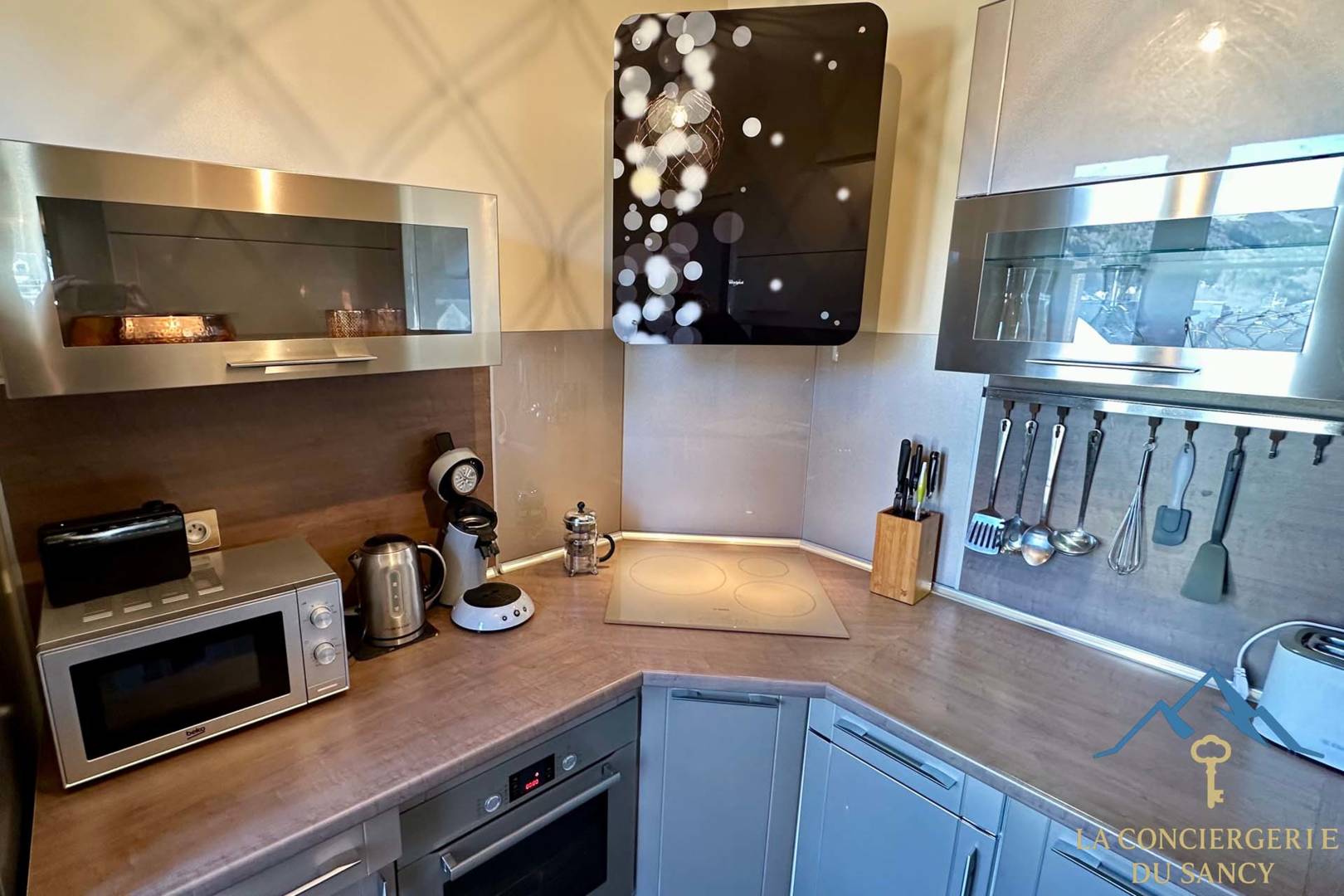 Plaque à induction, four, micro-ondes, réfrigérateur, machine à café, bouilloire, ustensiles de cuisine