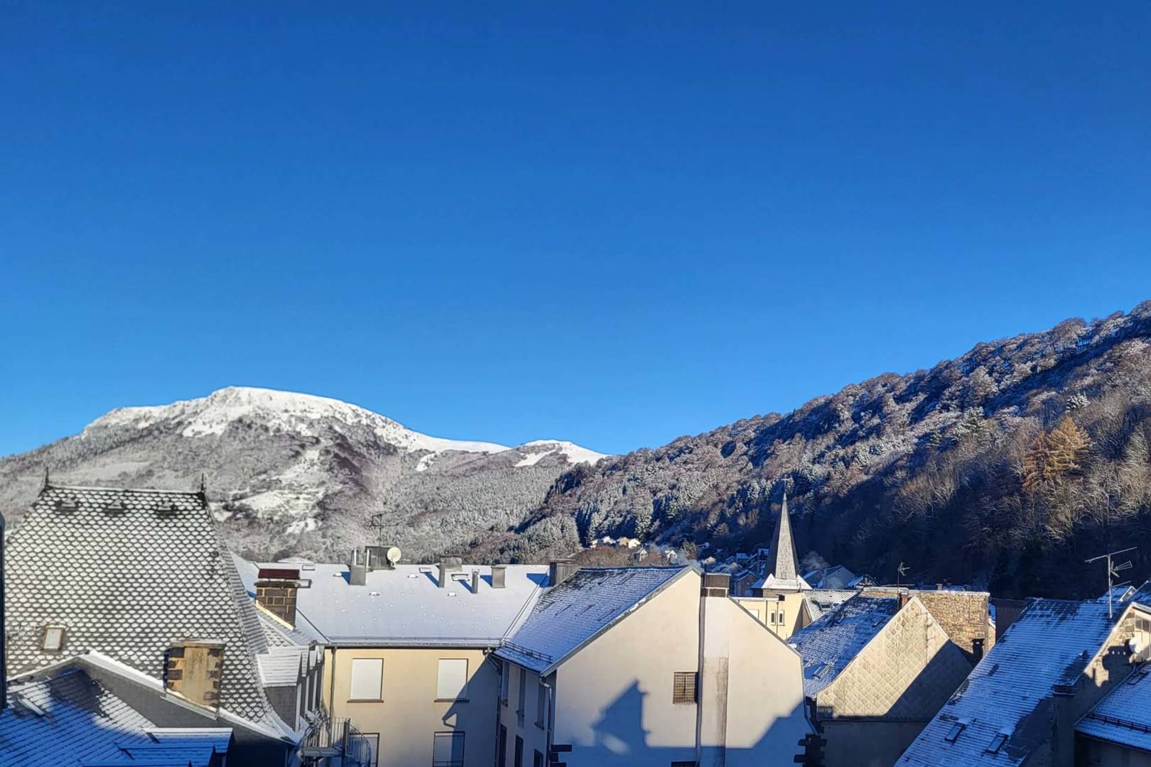 Vue sur la montagne et les Thermes. Navettes gratuites au pied de la résidence l’hiver(…)