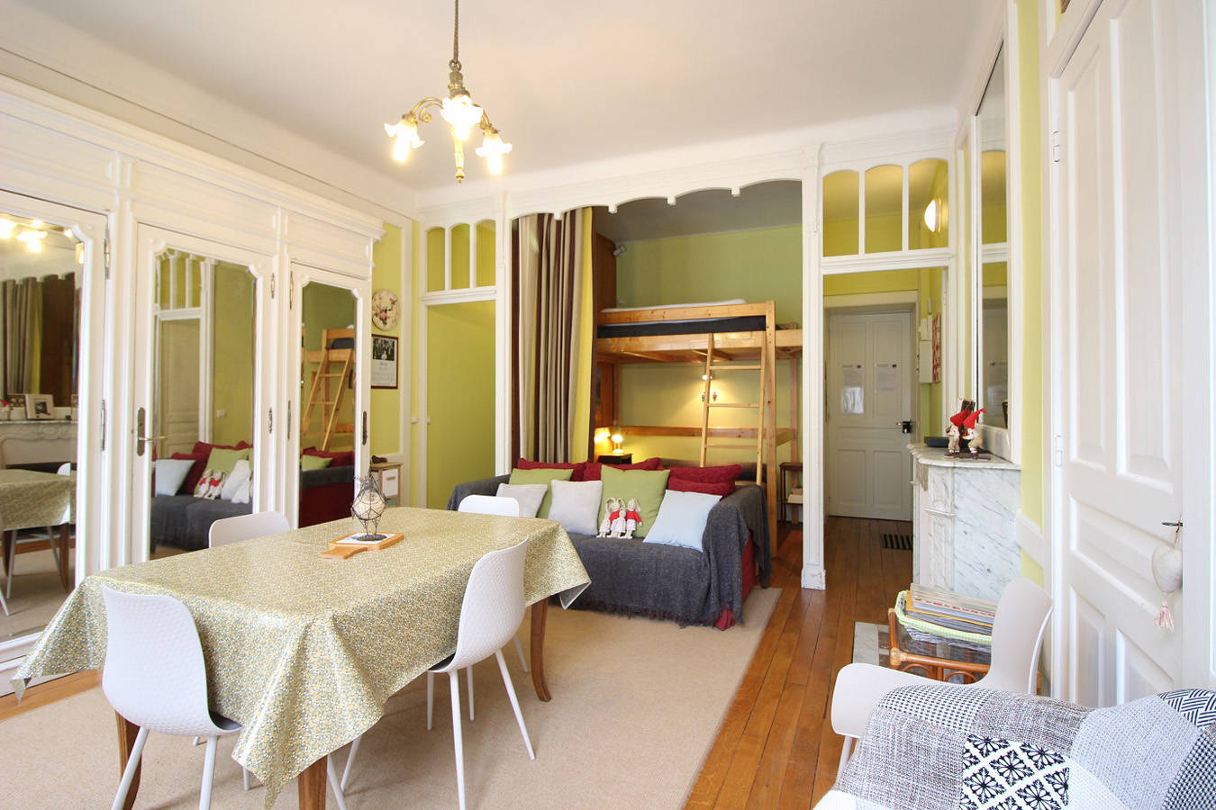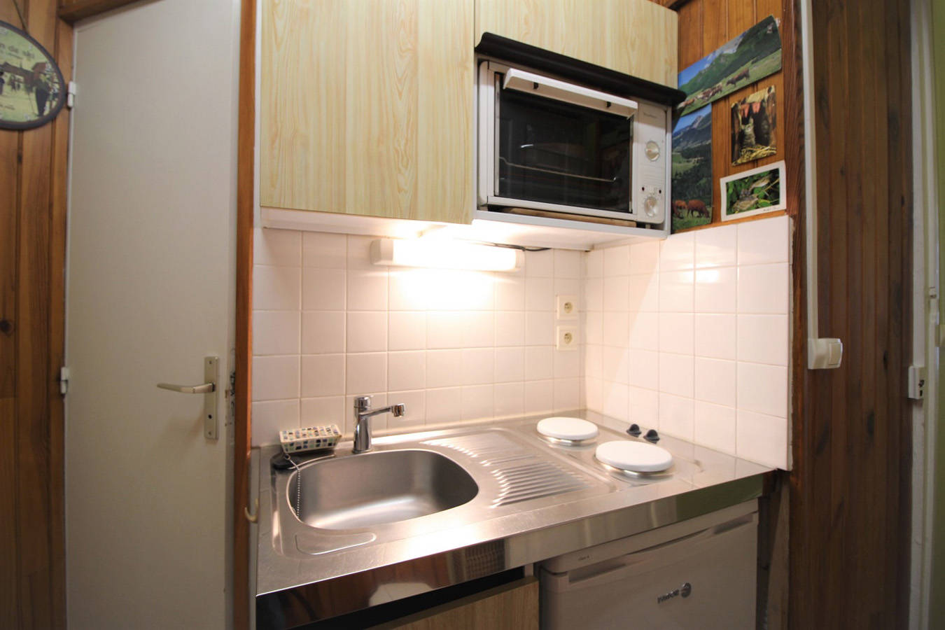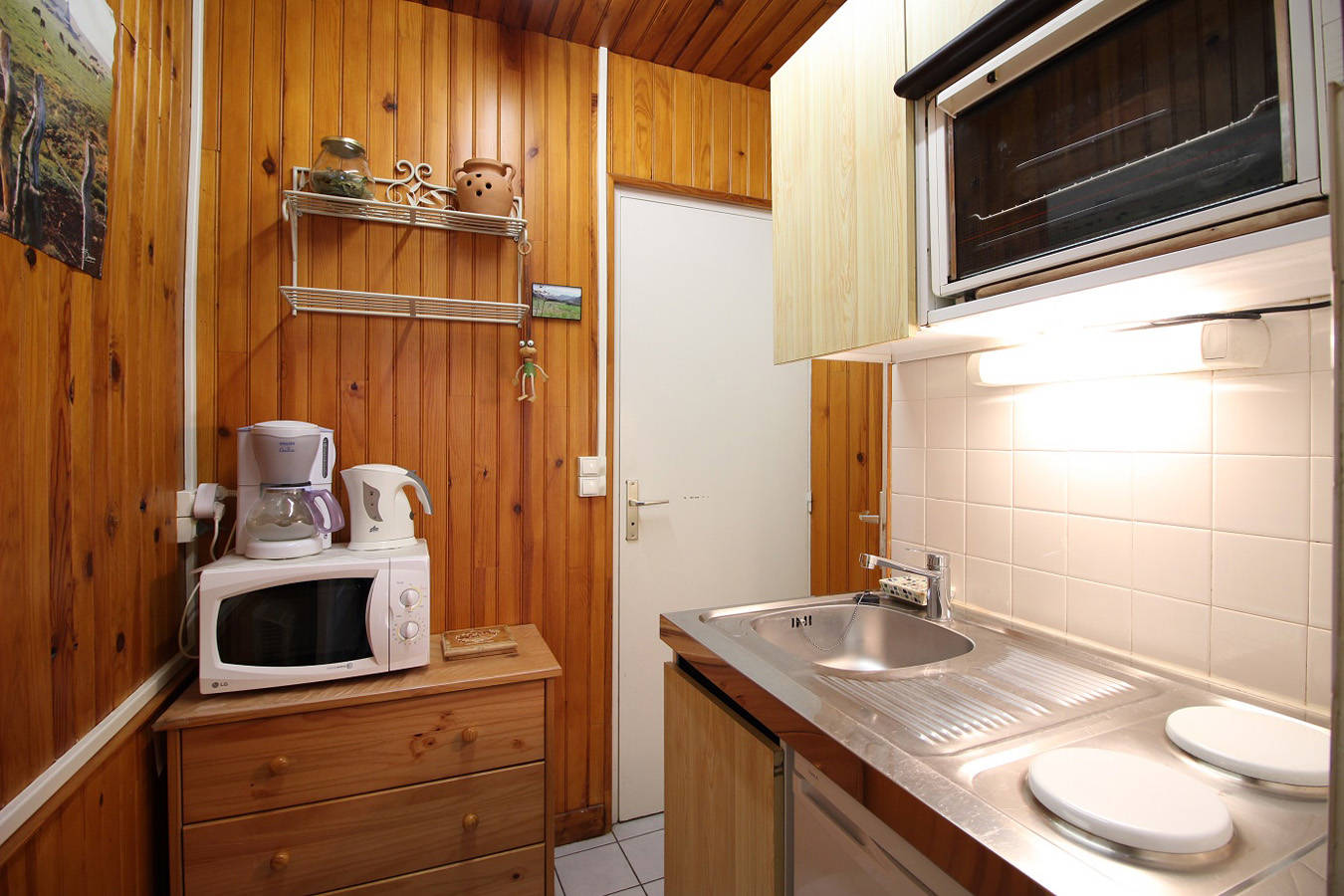 Il est composé d’une pièce à vivre, dont un coin chambre avec un lit de 140 cm et un lit superposé de 140 cm, table et chaises, clic clac 2 personnes, fauteuils et télévision. Une kitchenette équipée avec 2 plaques électriques, évier, four, réfrigérateur et micro-ondes. Une salle d’eau avec(…)