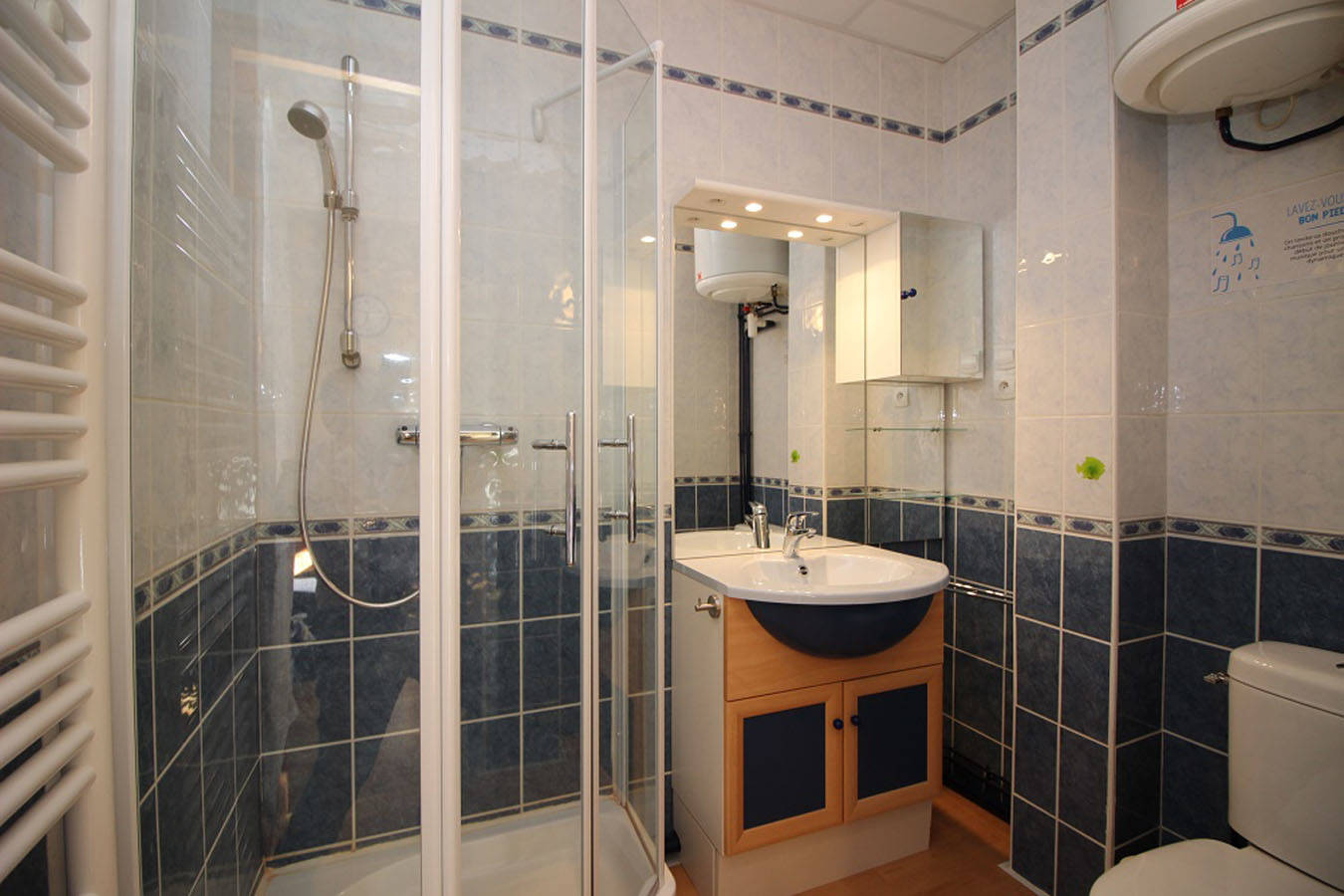 Composé d’une grande chambre avec un lit de 160 + un lit de 90, un salon-cuisine avec un BZ, une salle de bain, une salle d’eau.