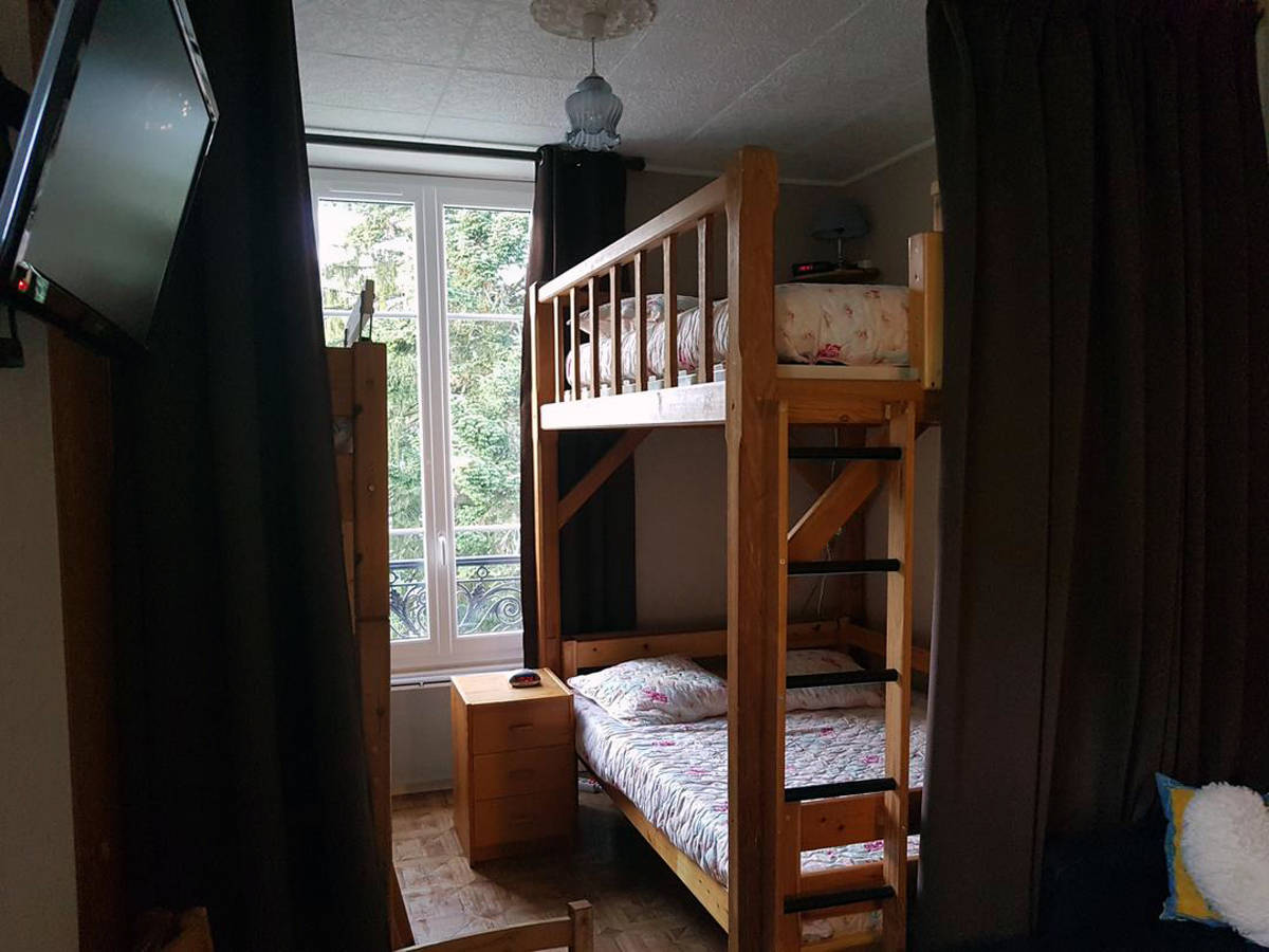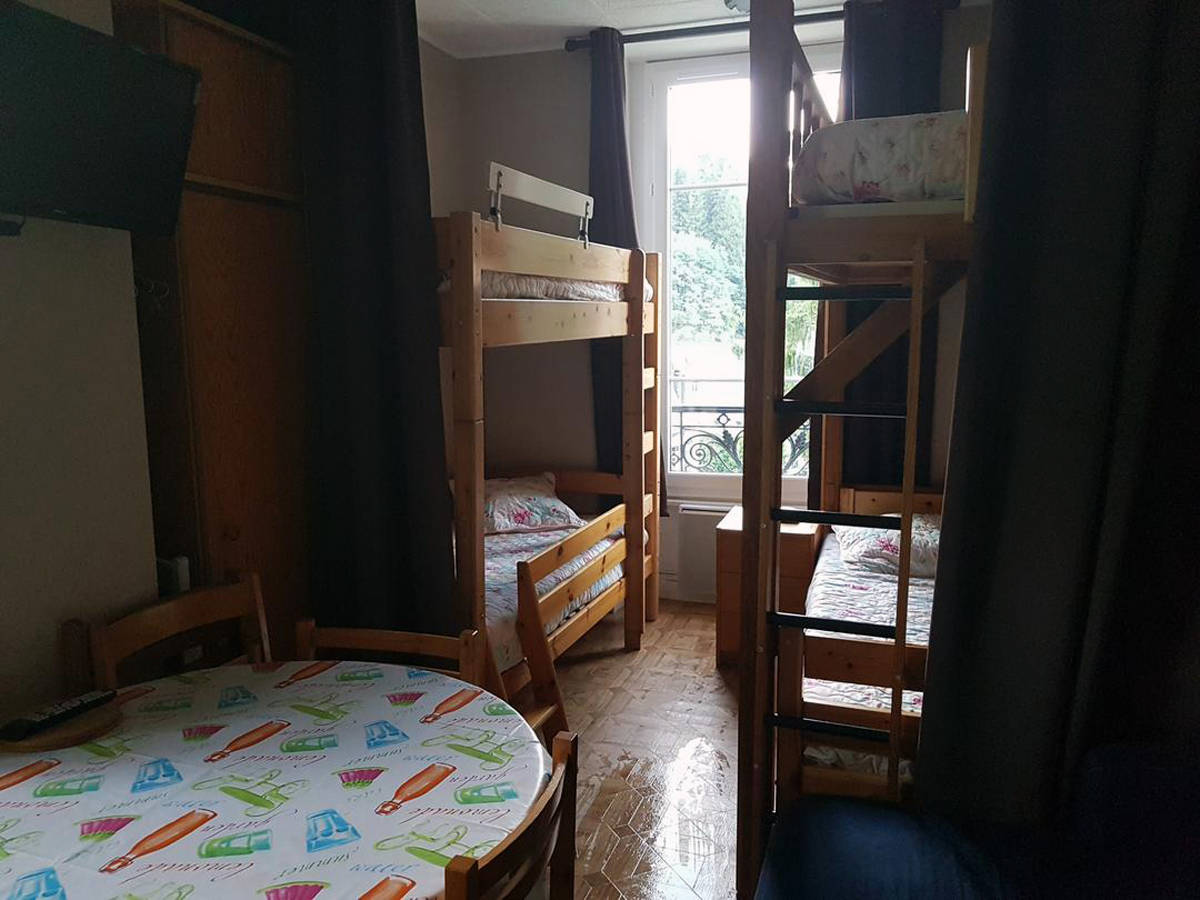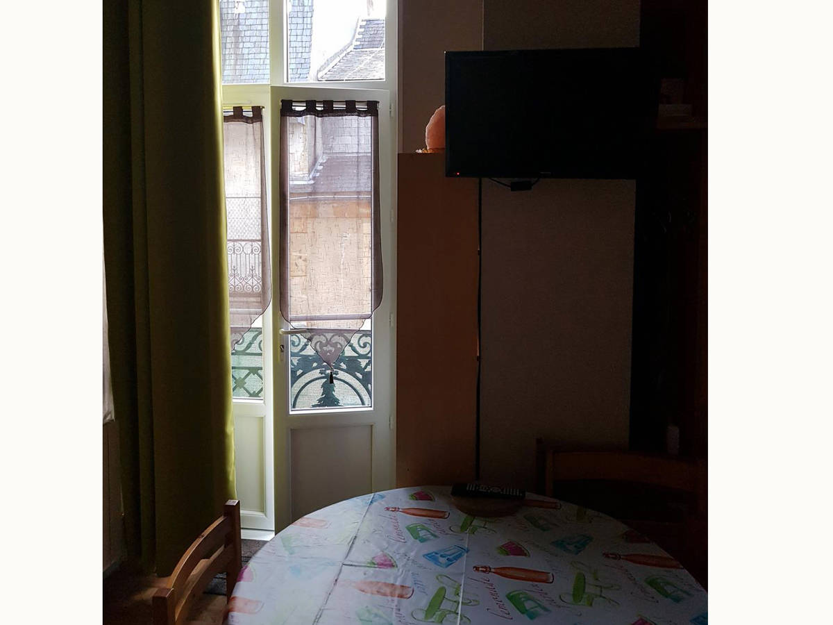 Coin cuisine avec four micro-ondes, cafetière Tassimo etc… Salle d’eau équipée d’une douche, wc sanibroyeur, lave linge séchant, fer et table à repasser. Coin nuit composé de 2 lits double superposés de 140, et 2 lits simples superposés de 90 avec couvertures et oreillers, petite armoire. Petit balcon de 2m² environ. A deux pas des Thermes, du Casino, du centre-ville et Parc Fenestre (nombreux jeux et attractions en saison estivale). Idéal pour un couple avec deux enfants, mais peut accueillir jusqu’à 6 personnes. Contact par mail ou téléphone 06 11 42 09 23.