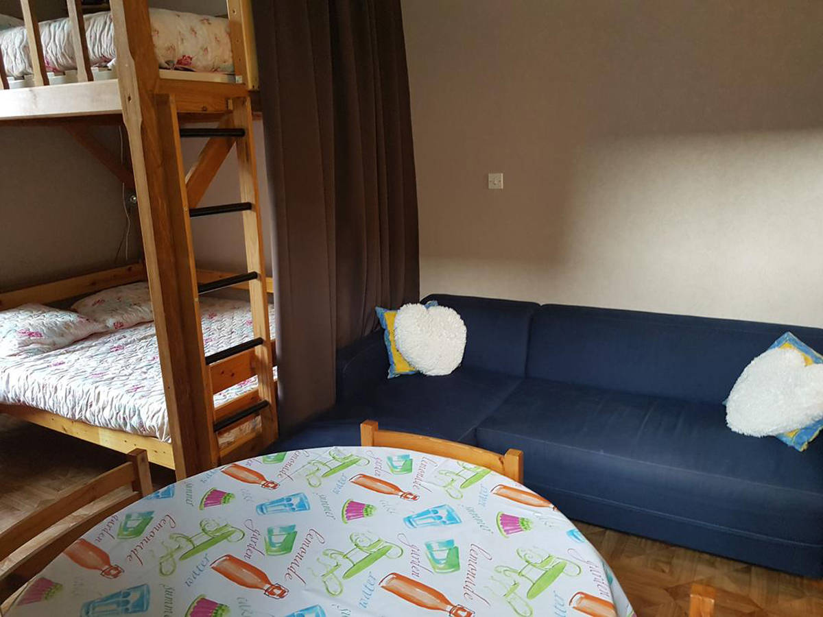 Coin cuisine avec four micro-ondes, cafetière Tassimo etc… Salle d’eau équipée d’une douche, wc sanibroyeur, lave linge séchant, fer et table à repasser. Coin nuit composé de 2 lits double superposés de 140, et 2 lits simples superposés de 90 avec couvertures et oreillers, petite armoire. Petit balcon de 2m²(…)