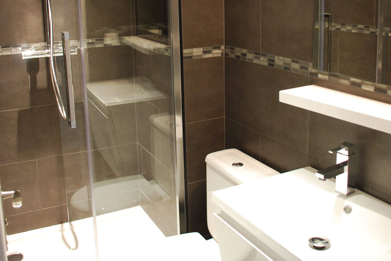 Salle de bain avec cabine de douche 110 cm et WC.