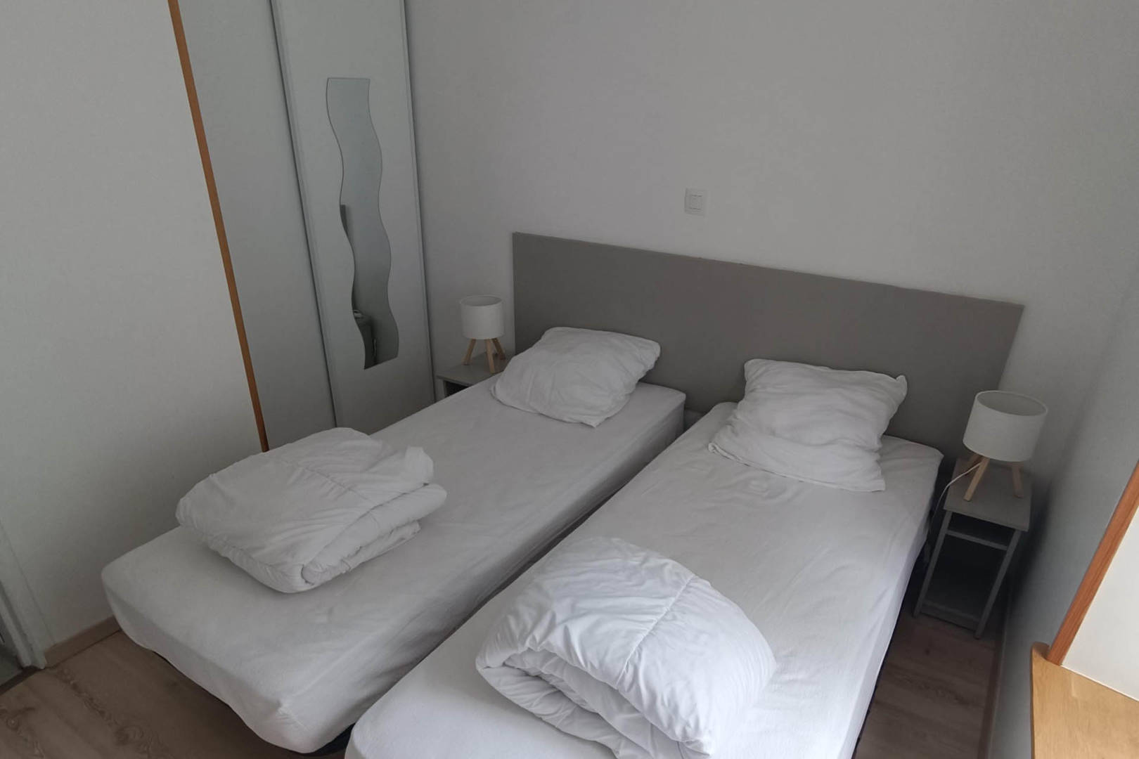1 chambre: lit 140+TV + placard. 1 chambre : 2 lits de 90+TV+ placard. 1 salle de bain avec douche à l’italienne. WC séparés. Petite buanderie avec machine à laver/ séchante/ étendoir à linge. Cuisine toute équipée avec lave vaisselle. Machine à café Dolce Gusto + Machine à café classique. Appareil raclette. Appareil croque Monsieur/gauffre. Jeux et Livres.