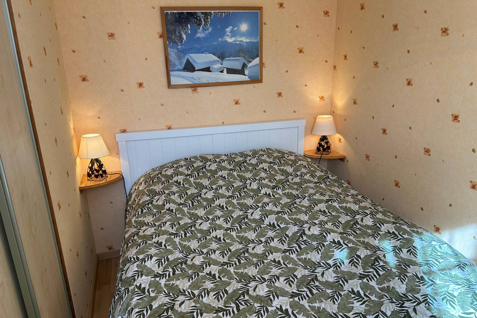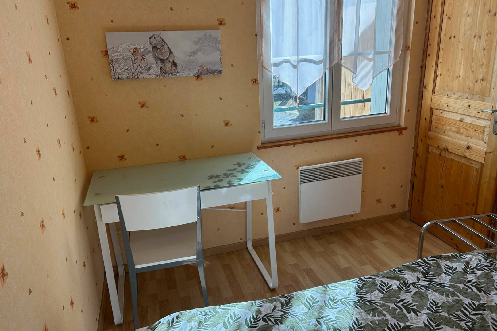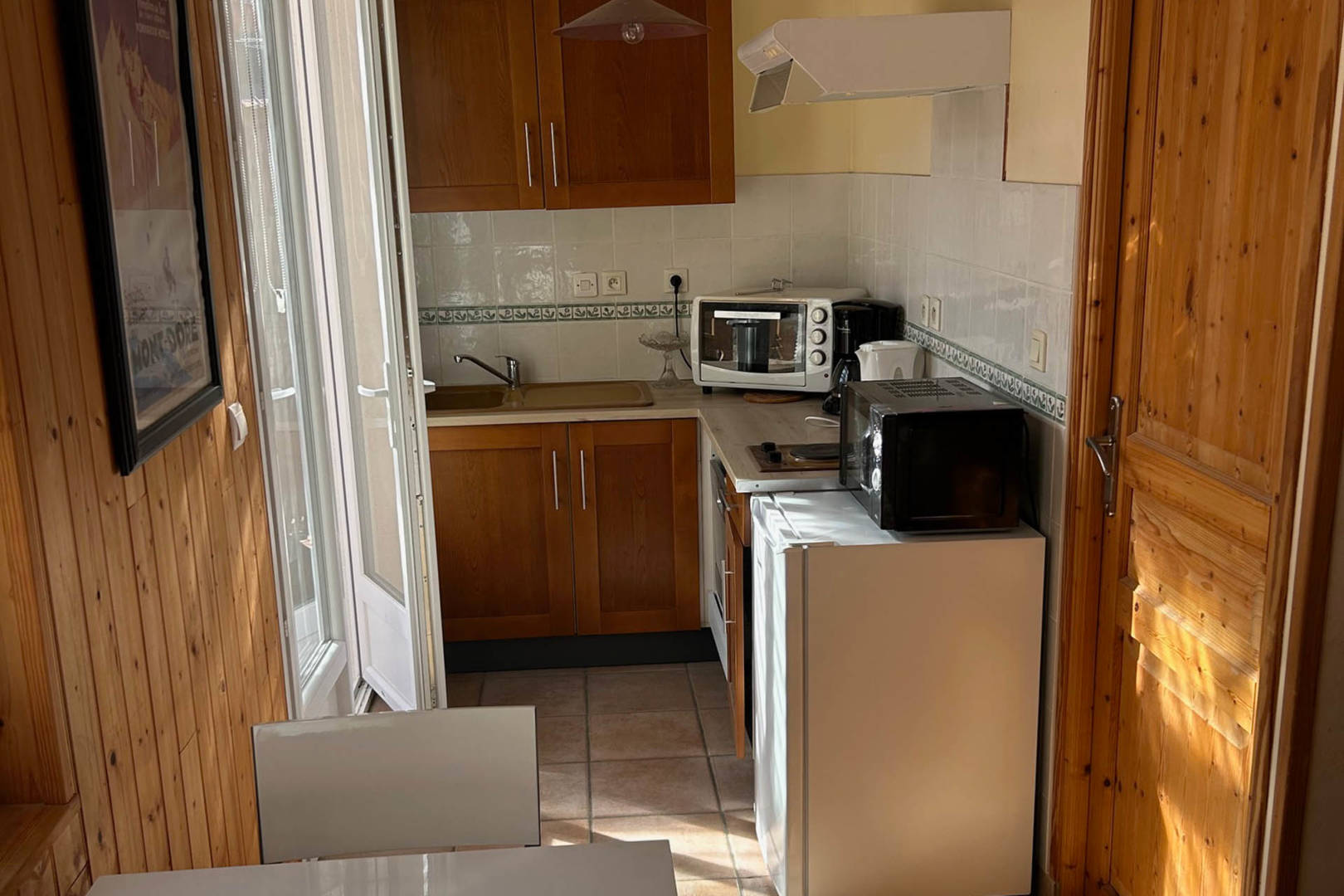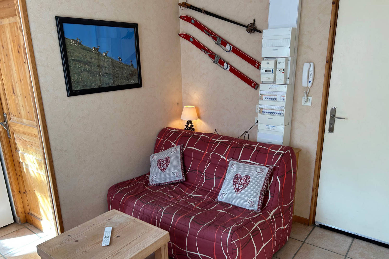 Joli F2 de 30 m² au 1er étage surélevé avec une chambre (lit de 140) et un séjour-cuisine avec un canapé BZ convertible, exposition sud-est avec vue sur le Sancy.