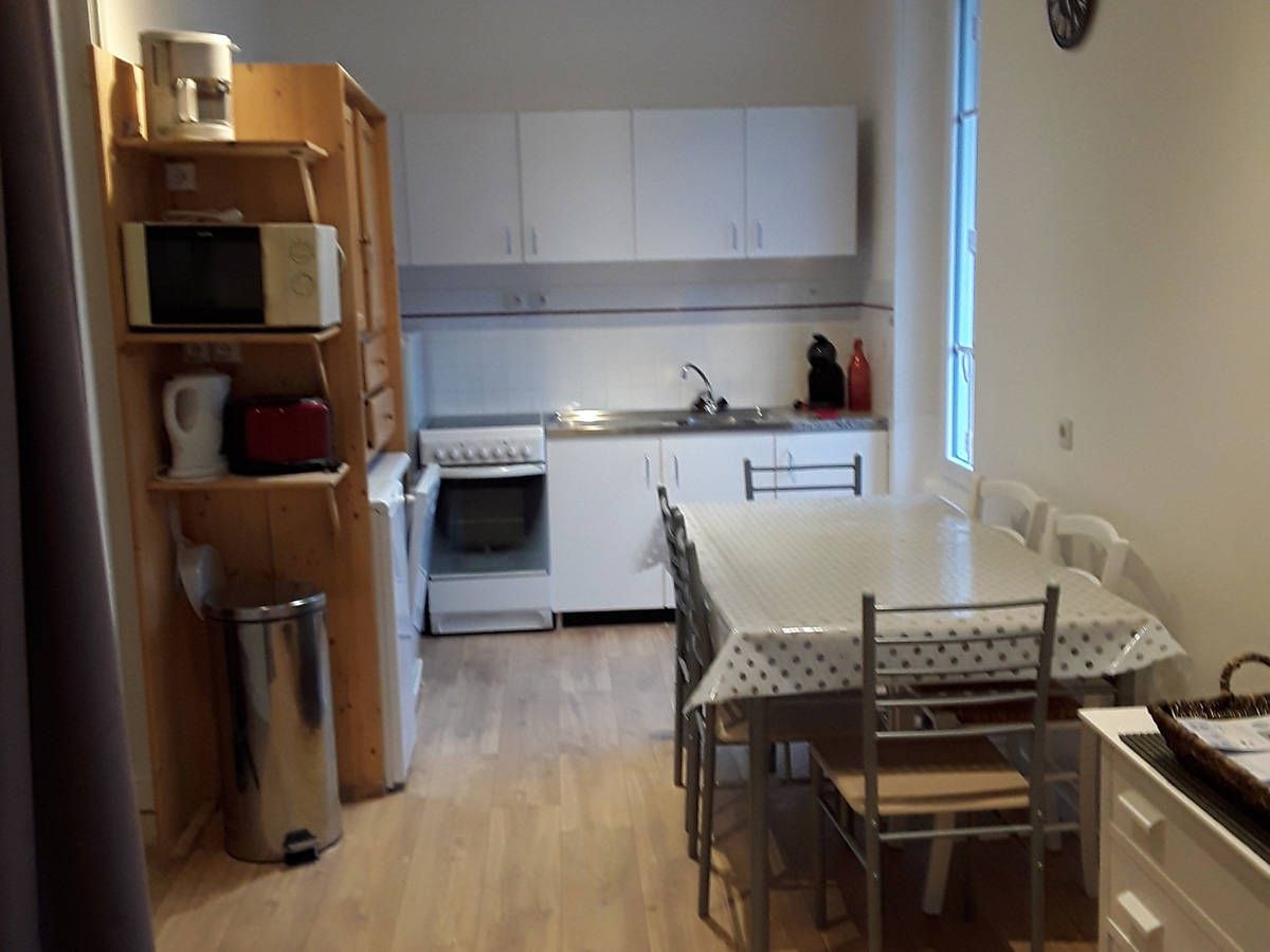 Entrée avec rangement, cuisine équipée, lave-vaisselle, lave-linge, cuisinière électrique avec four, micro-ondes. Table à repasser, service à raclette …