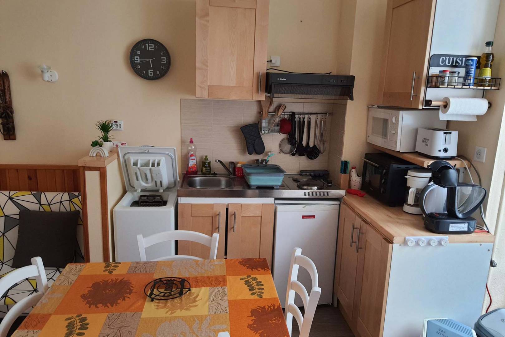 Pièce à vivre avec cuisine équipée, une chambre avec un lit de 140 et deux lits de 90 superposés, salle d’eau avec WC. Canapé convertible – lit bébé – aspirateur – lave-linge privatif – matériel de repassage. WIFI gratuit – séjour : TV connectée (Netflix…) – chambre : TV écran plat. Four électrique + micro-ondes – appareil à raclette – cafetière électrique + cafetière capsules Dolce gusto – bouilloire électrique – grille pain. Non fumeur – animaux non acceptés.