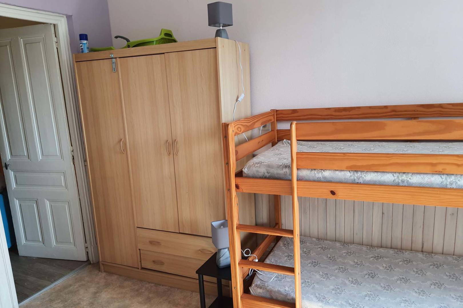 Pièce à vivre avec cuisine équipée, une chambre avec un lit de 140 et deux lits de 90 superposés, salle d’eau avec WC. Canapé convertible – lit bébé – aspirateur – lave-linge privatif – matériel de repassage. WIFI gratuit – séjour : TV connectée (Netflix…) – chambre : TV écran(…)