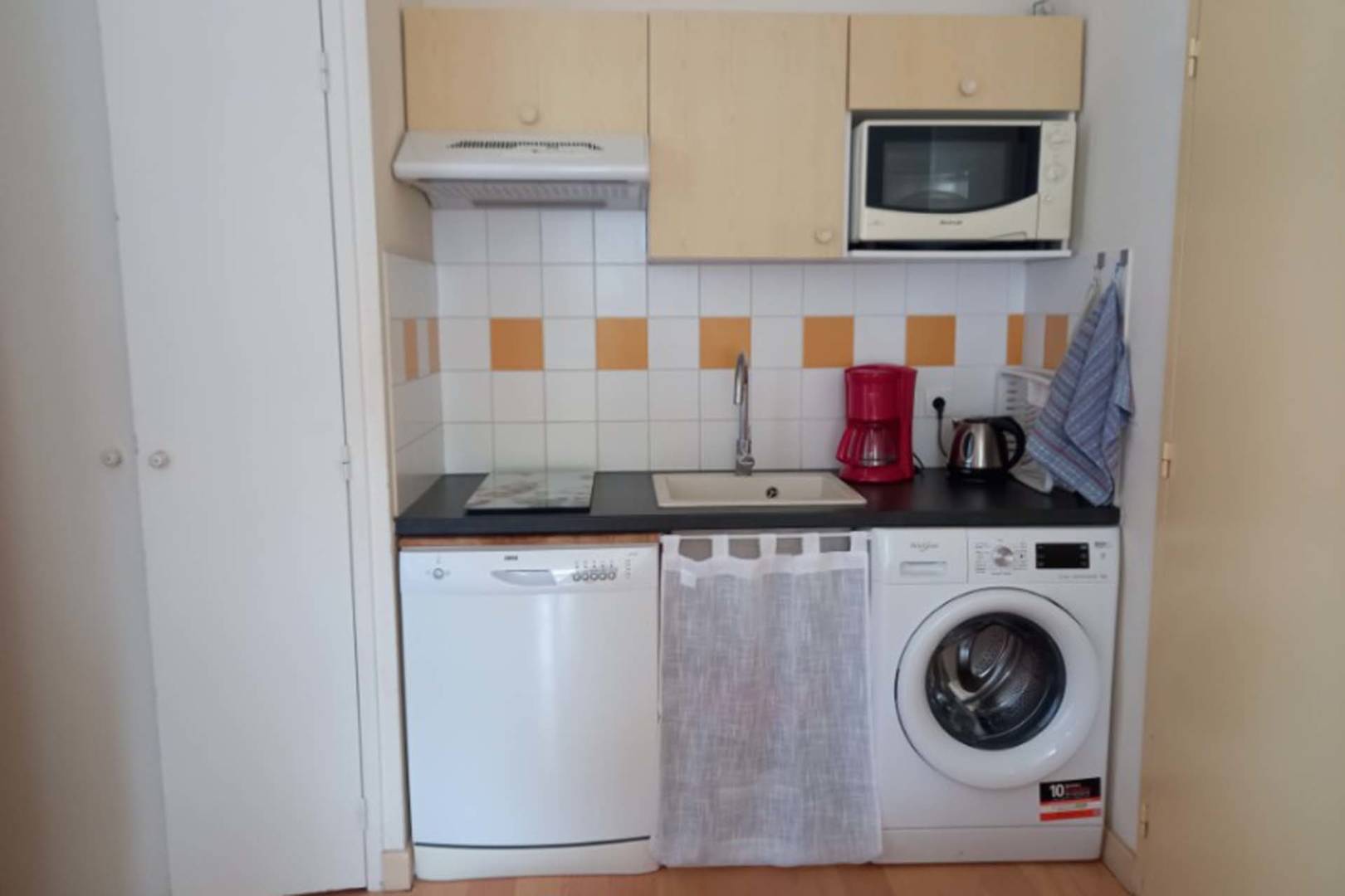 Studio au rez de chaussée, bien exposé sud-ouest composé d’une pièce à vivre avec kitchenette aménagée (lave linge, lave vaisselle, réfrigérateur -congélateur)