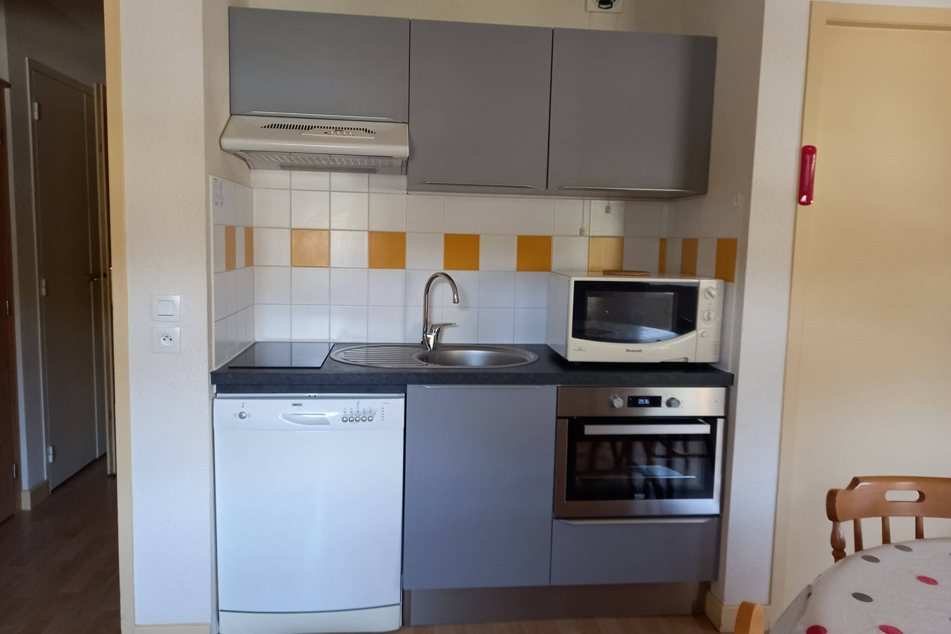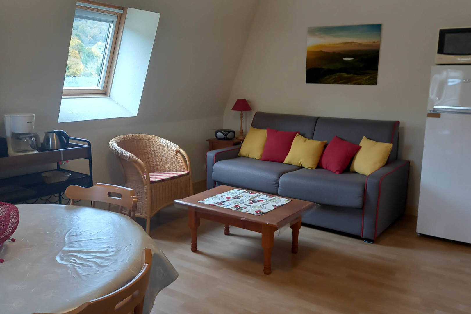 1 pièce à vivre avec cuisine, salon avec canapé convertible 2 couchages.