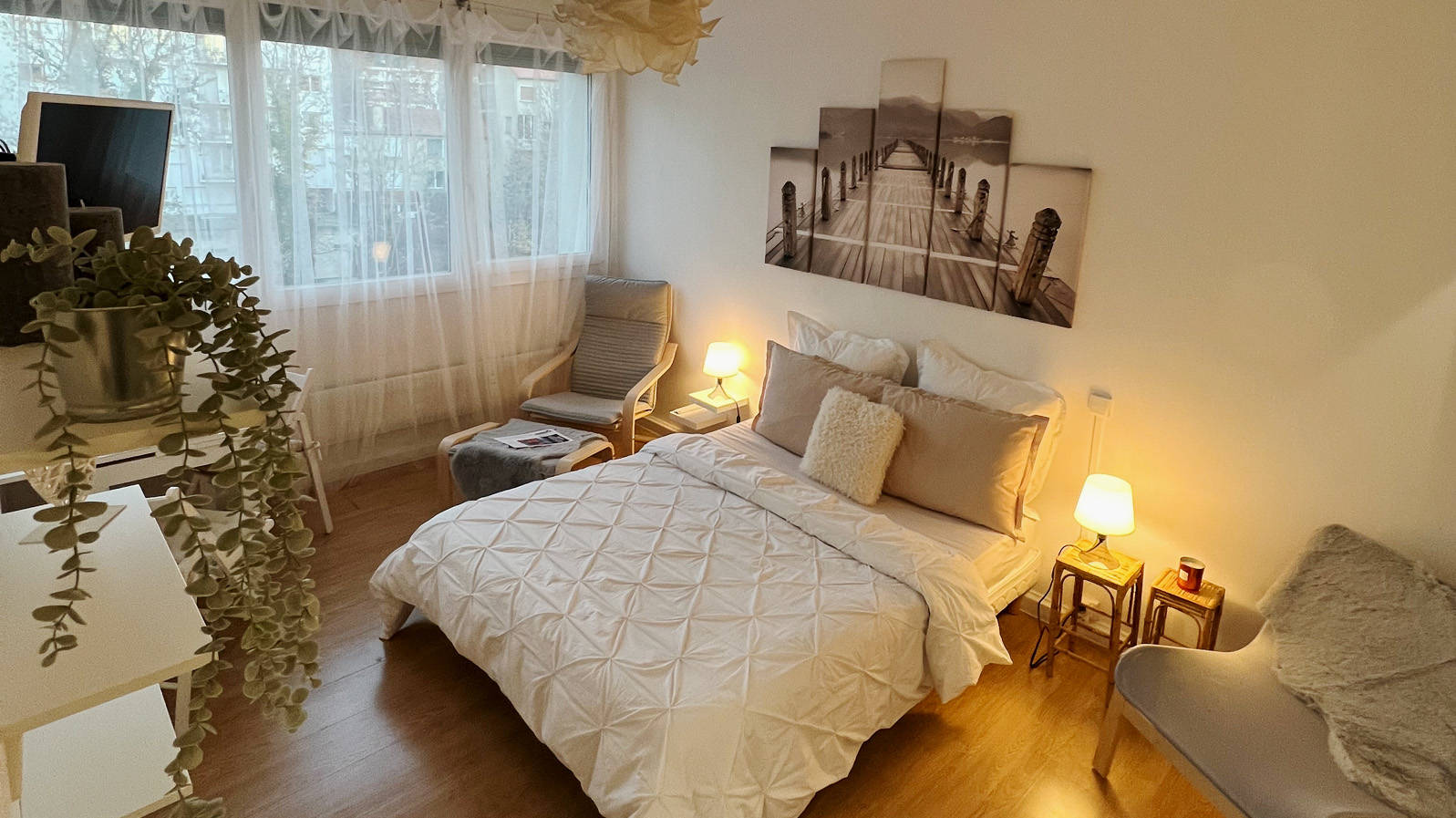 Studio de 23m² situé au 3ème étage avec ascenseur. Cuisine entièrement équipée. Chambre avec lit 140 de très bonne qualité (matelas épais, soutien ferme). Accès internet gratuit. TV écran plat.