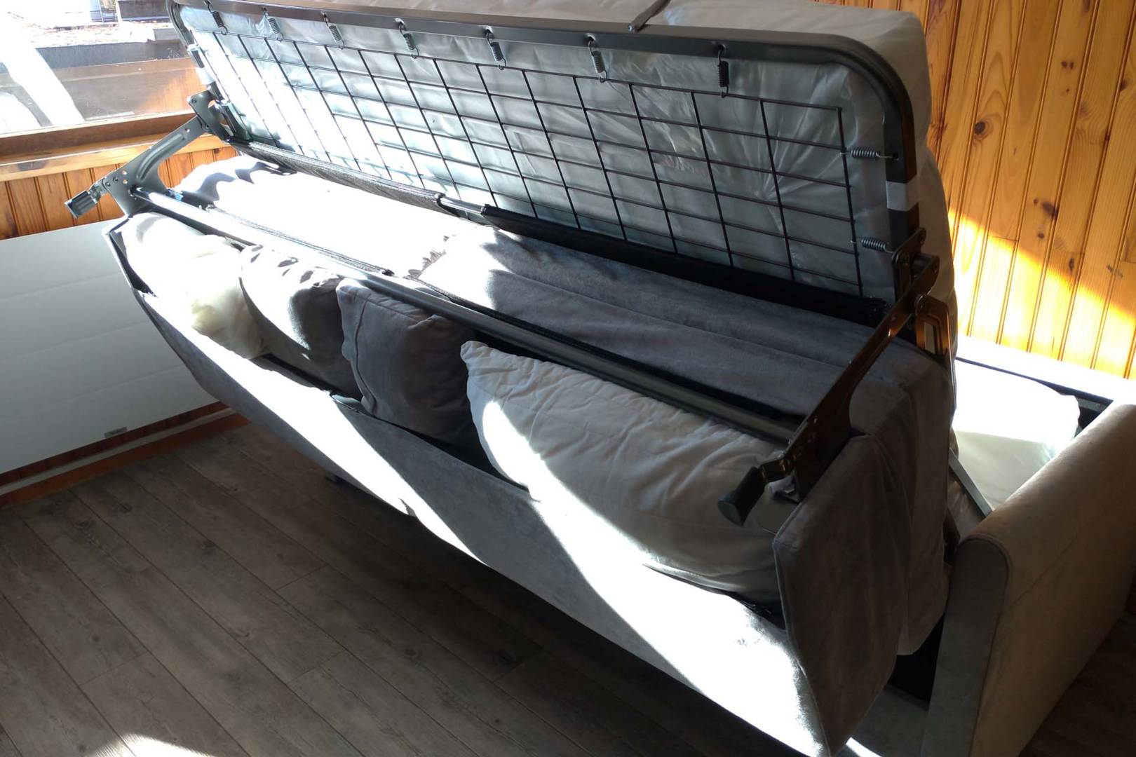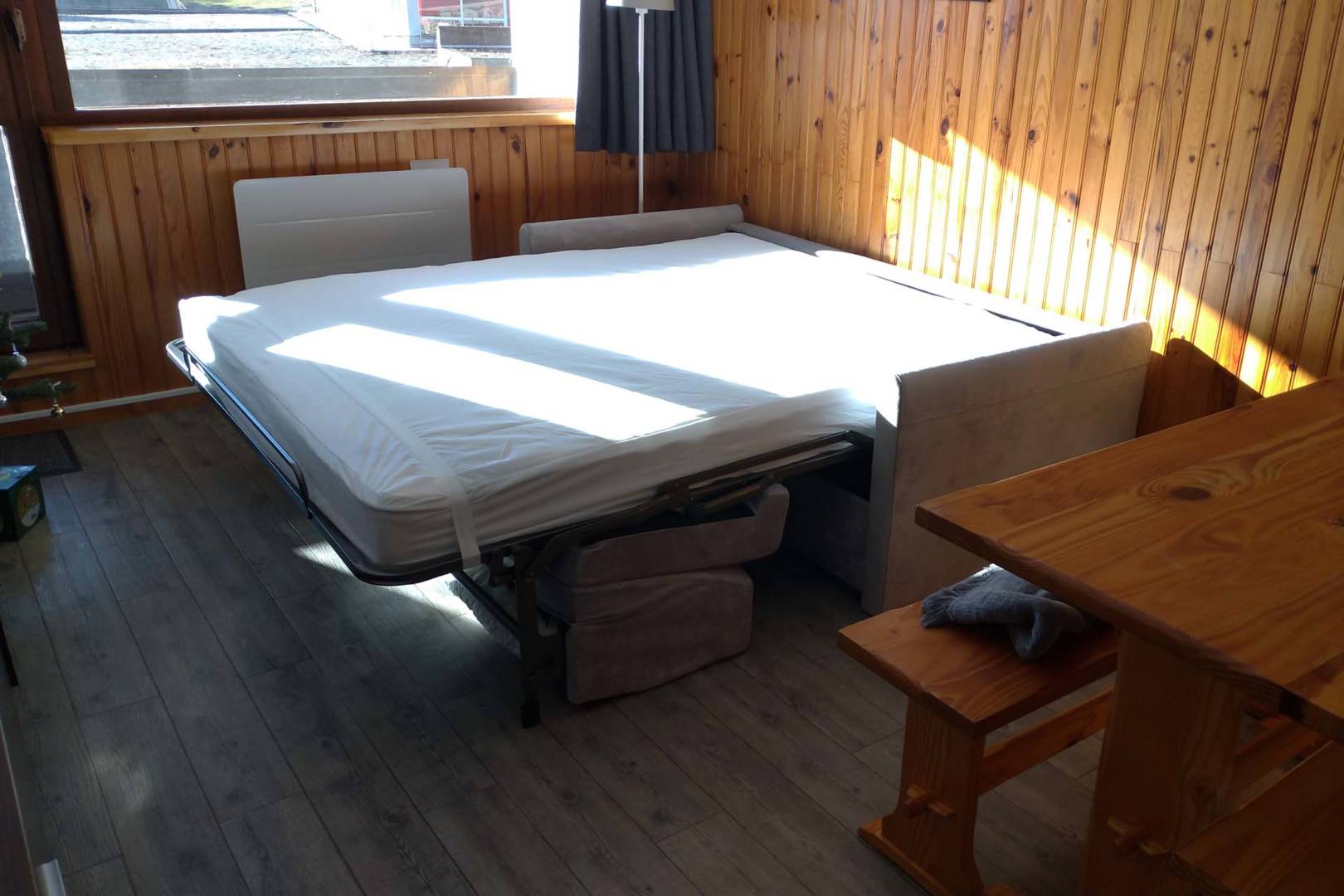 Le couchage des parents est situé dans la pièce principale sur une literie de 160 cm de large pour couchage quotidien.