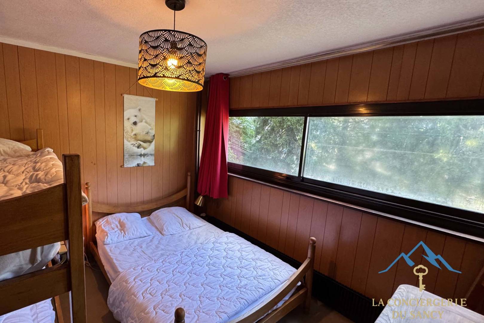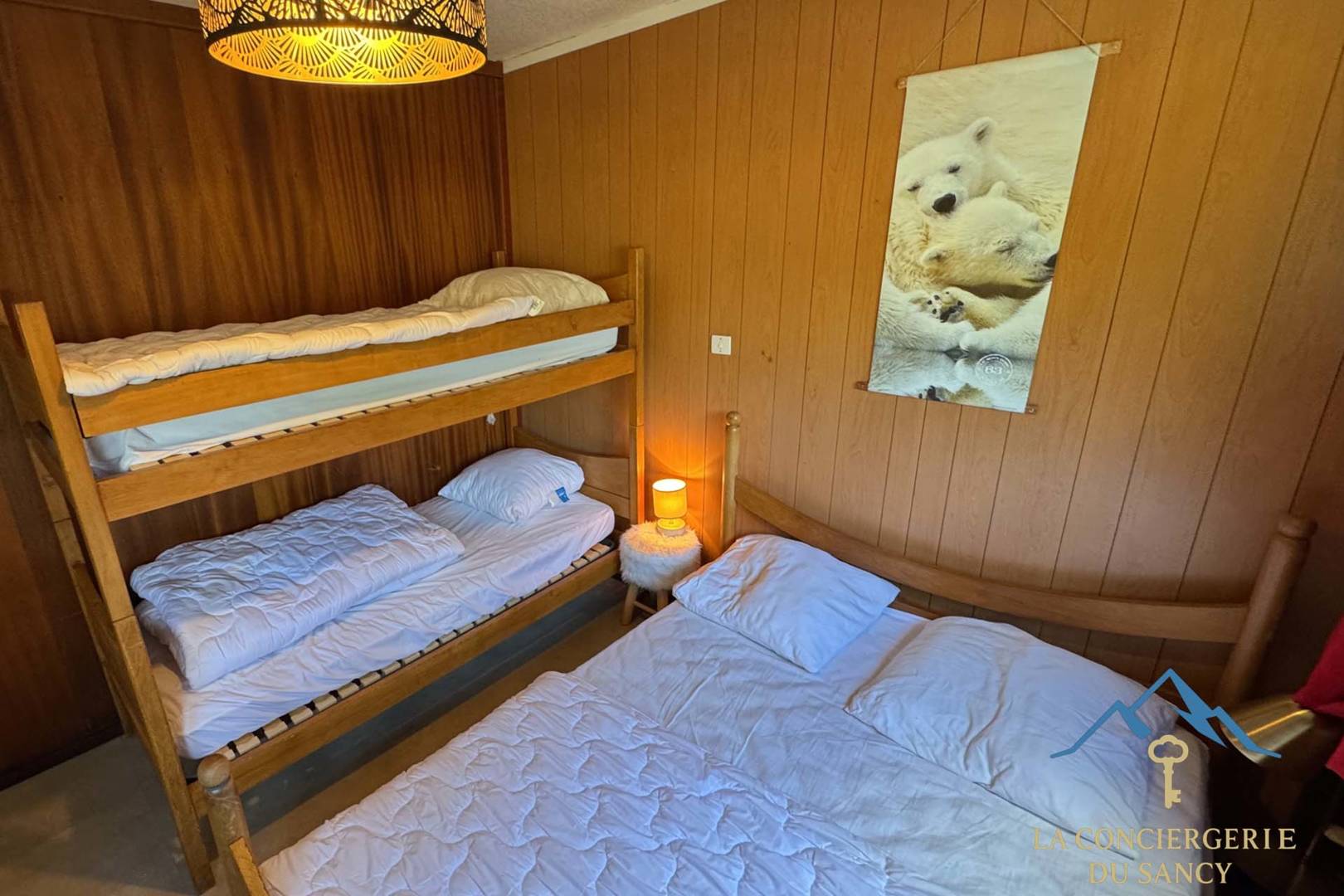 L’appartement comprend une chambre avec 1 lit double et 1 lit superposé, permettant d’accueillir jusqu’à 4 voyageurs dans une configuration adaptable et confortable. Le séjour avec ses deux banquettes d’une place peut accueillir 2 personnes supplémentaires.