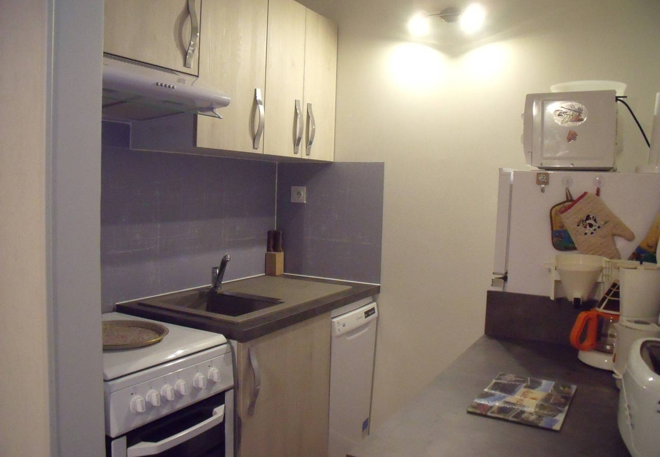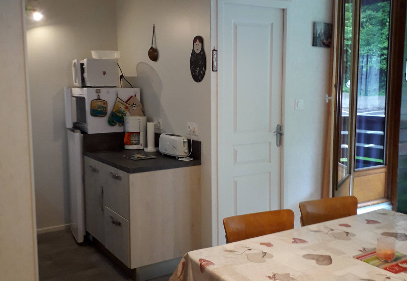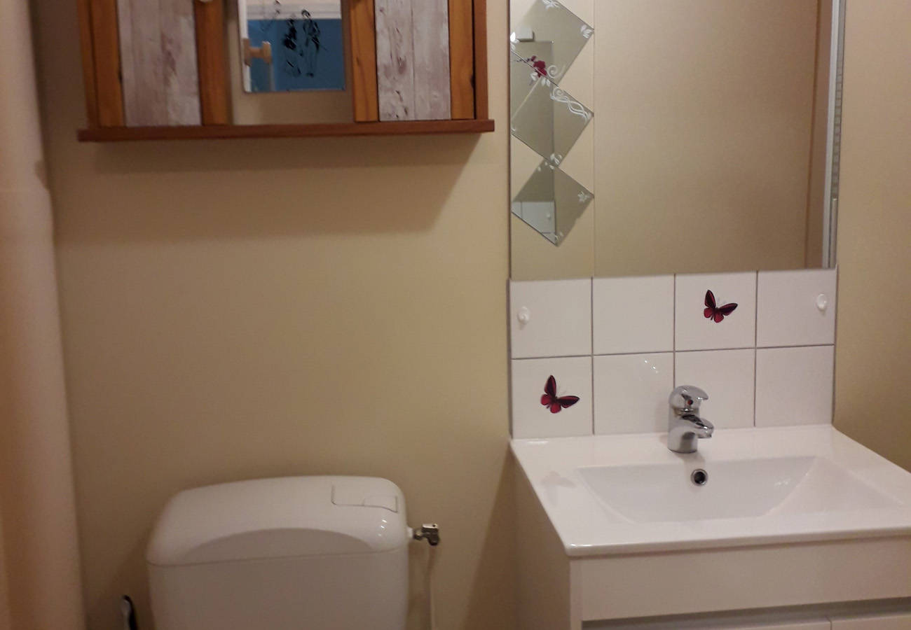Cet appartement pouvant accueillir quatre à cinq personnes se compose comme suit : – une entrée avec grand placard, penderie et nécessaire pour le ménage, produits d’entretien, désinfectants… – une cuisine entièrement réaménagée et équipée à neuf, ouverte sur le séjour, cuisinière électrique quatre plaques avec four, hotte aspirante, micro-ondes, réfrigérateur / congélateur deux portes, lave-vaisselle, cafetière, bouilloire, grille-pain, service à raclette, service à fondue… Nombreux rangements et plans de travail fonctionnels. – une partie living avec clic-clac, TV, lecteur DVD et jeux de société. – une chambre équipée d’un grand placard/penderie avec un lit de 140 cm et un couchage de 90 cm. – une salle d’eau avec cabine-douche, radiateur sèche-serviettes, sèche-cheveux, lave-linge et WC.
