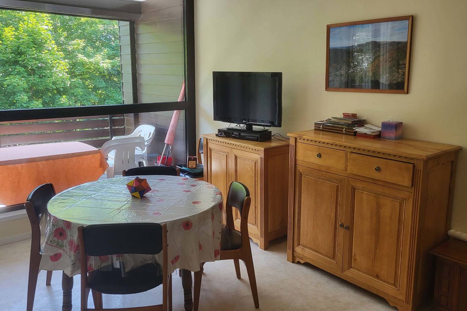 Fonctionnel et périodiquement rénové, il offre une belle vue sur la montagne et la Grande Cascade avec une exposition Est. Une place de parking privative.