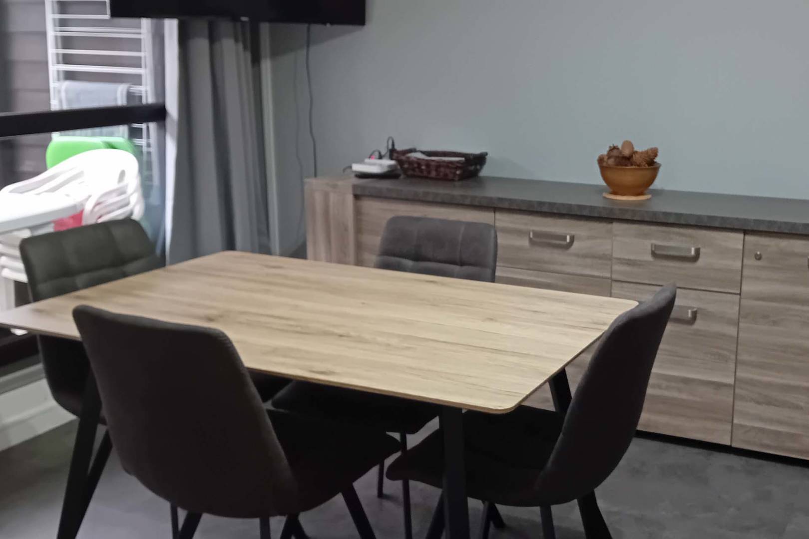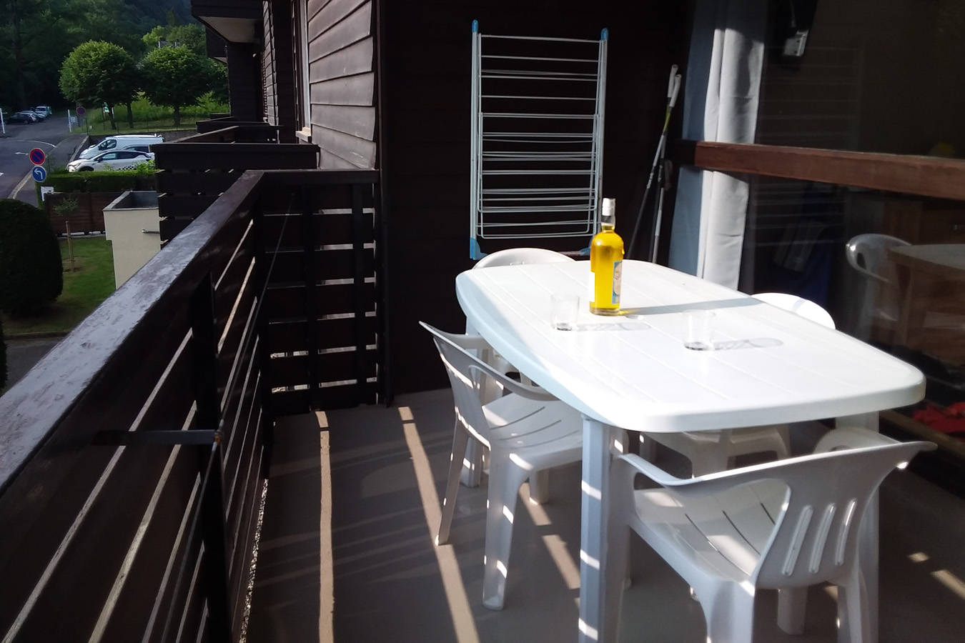 Il dispose d’un grand balcon aménagé avec un salon de jardin, offrant une vue agréable sur la Grande Cascade.