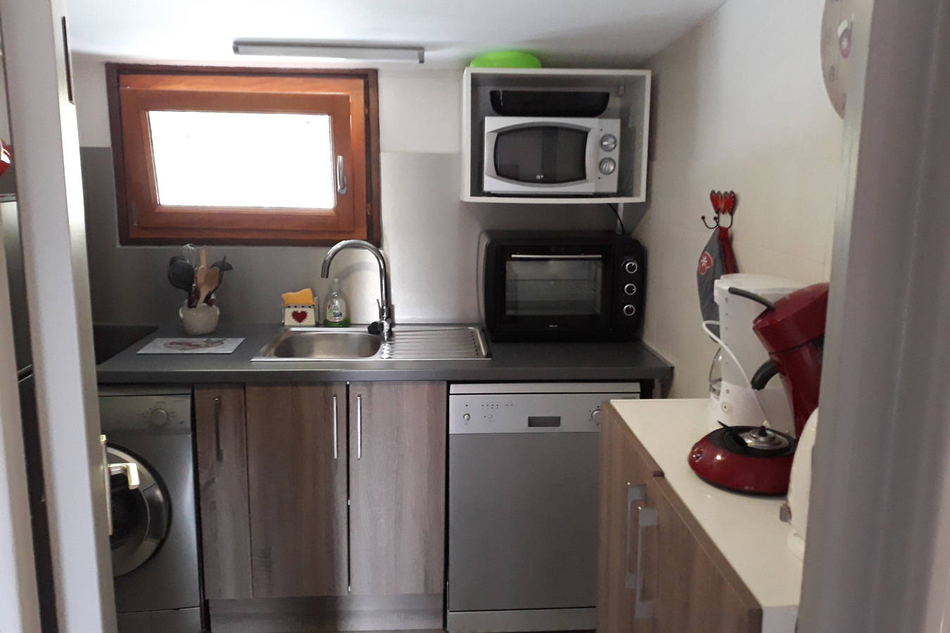 – une cuisine indépendant aménagée, équipement neuf, avec plaque à vitrocéramique 2 feux, four / micro-ondes, réfrigérateur/congélateur, lave-vaisselle ; lave linge, cafetière, bouilloire …