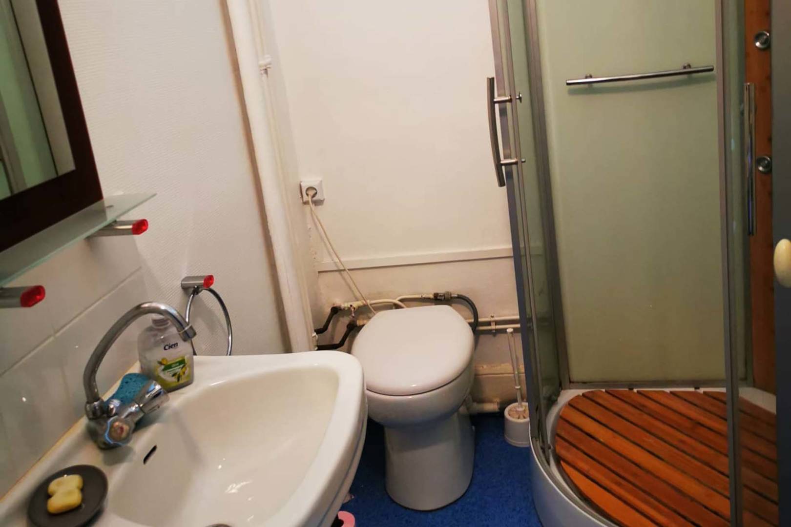 Un cabinet de douche avec WC