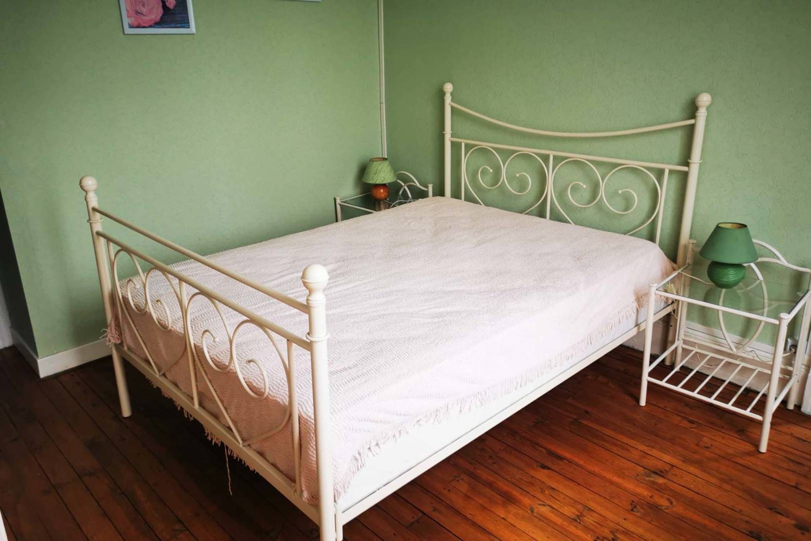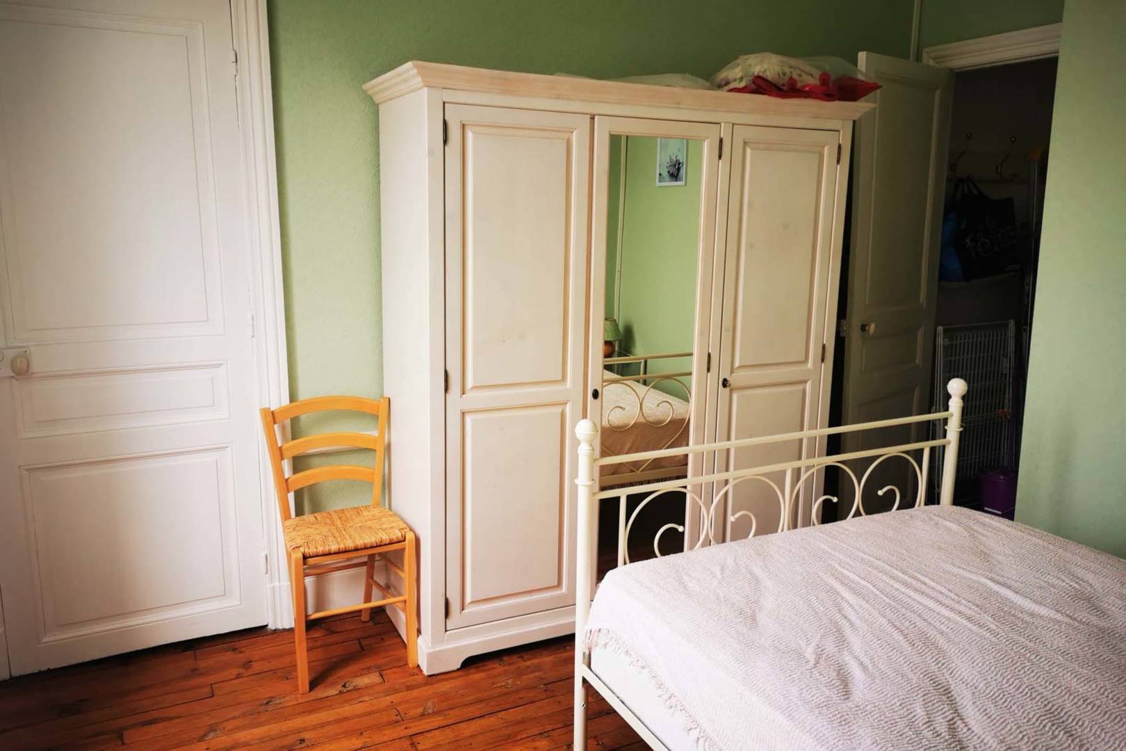 Une chambre avec un lit double en 140 cm, armoire avec penderie, un clic-clac .