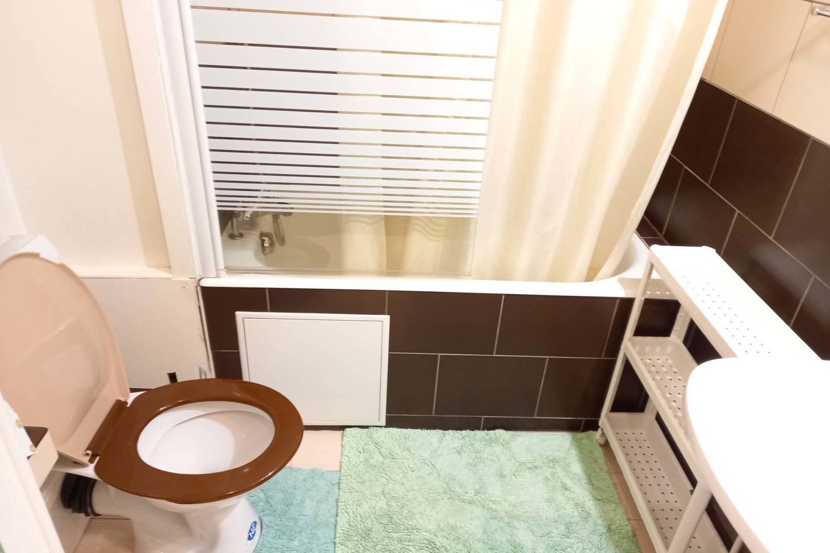 Une salle de bain avec baignoire, 2 WC, un cabinet de toilette et une petite(…)