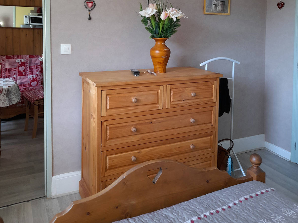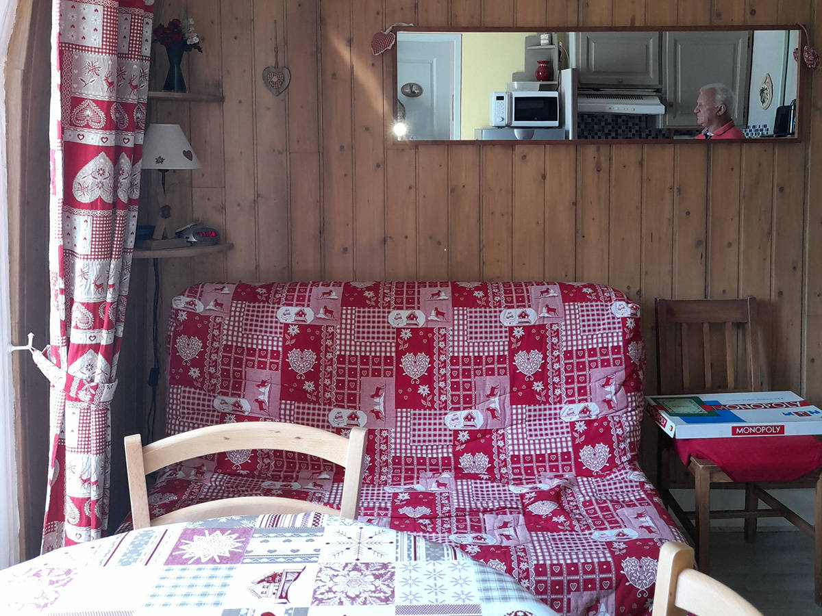 Calme, propre, chaleureux, situé au centre du village. Ascenseur, Wifi, équipement fonctionnel et de qualité, lave-linge, lave-vaisselle, mini four, four micro-ondes, plaque vitrocéramique. Téléviseur écran plat, lecteur DVD. Un BZ, une chambre avec lit de 140 + une chambre avec 2 lits superposés, commode et chevet ; une salle d’eau avec douche et lavabo WC, un cabinet de toilette avec lavabo et WC. Un local à ski. Vue dégagée sur la montagne et le village. Navette gratuite pour la station de ski au pied de l’immeuble (circule les week-ends hors vacances scolaires et pendant toutes les vacances scolaires)