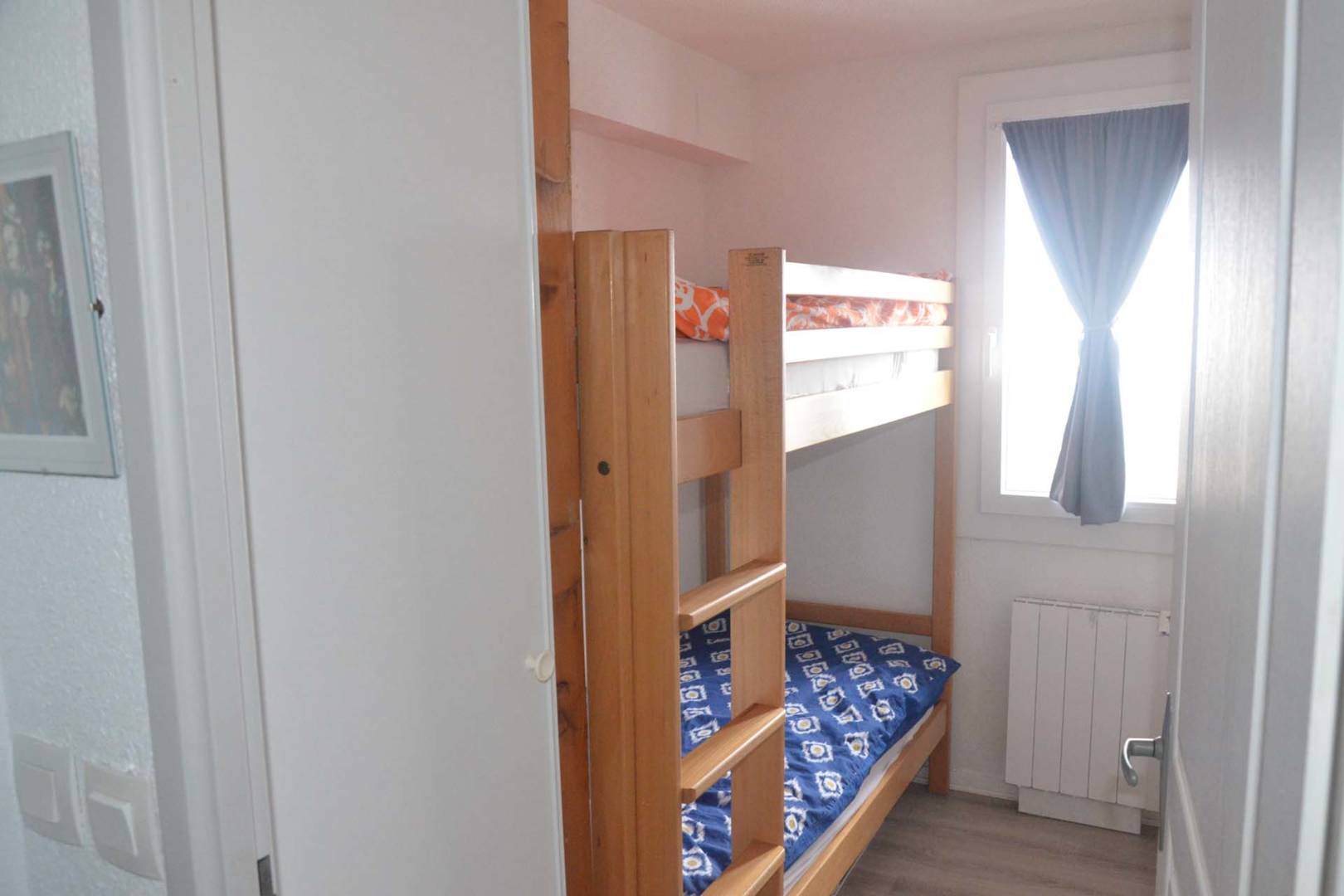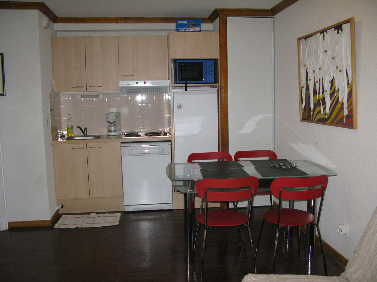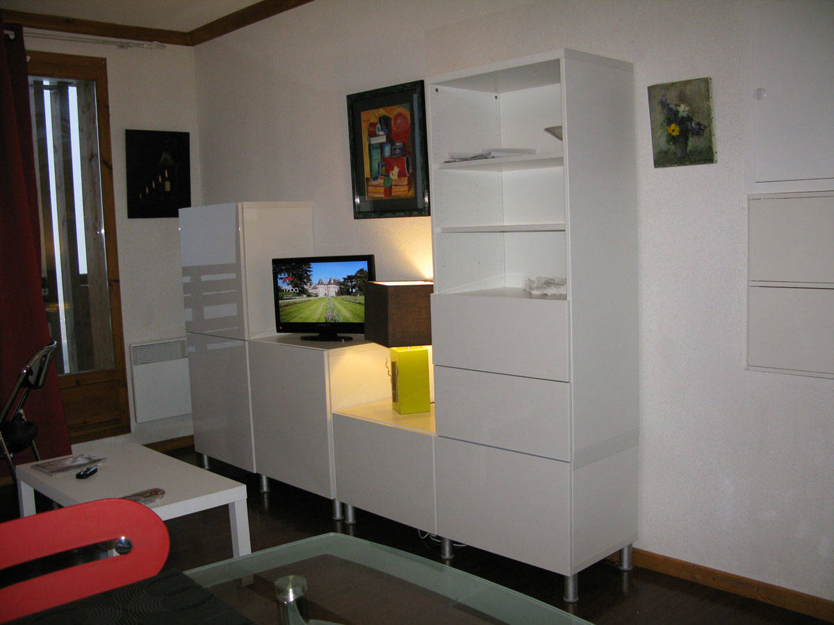Appartement composé d’un séjour avec cuisine américaine équipée (lave-vaisselle, 4 plaques vitrocéramiques, micro-ondes, frigo, hotte), d’un canapé clic-clac (140) TV. Le séjour s’ouvre sur un balcon-terrasse plein sud, vue imprenable sur les pistes et la vallée (sans vis-à-vis) Une chambre avec lit de 140 et 2 placards, une deuxième chambre fermée et indépendante avec 2 lits superposés et placard. Salle de bain avec baignoire. WC séparés; entrée; casier à skis, parking privatif en sous sol.
