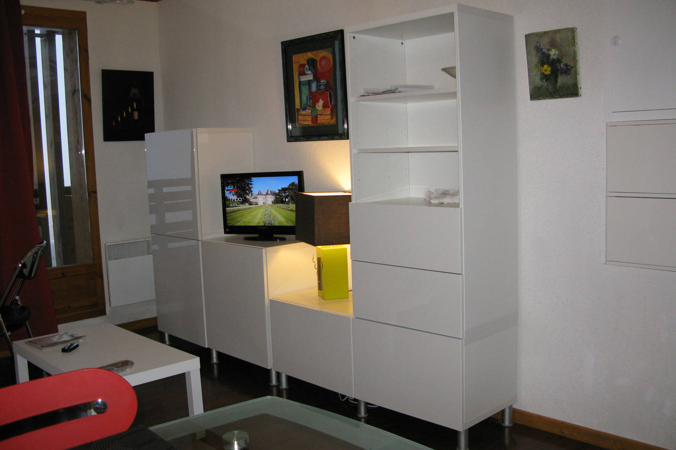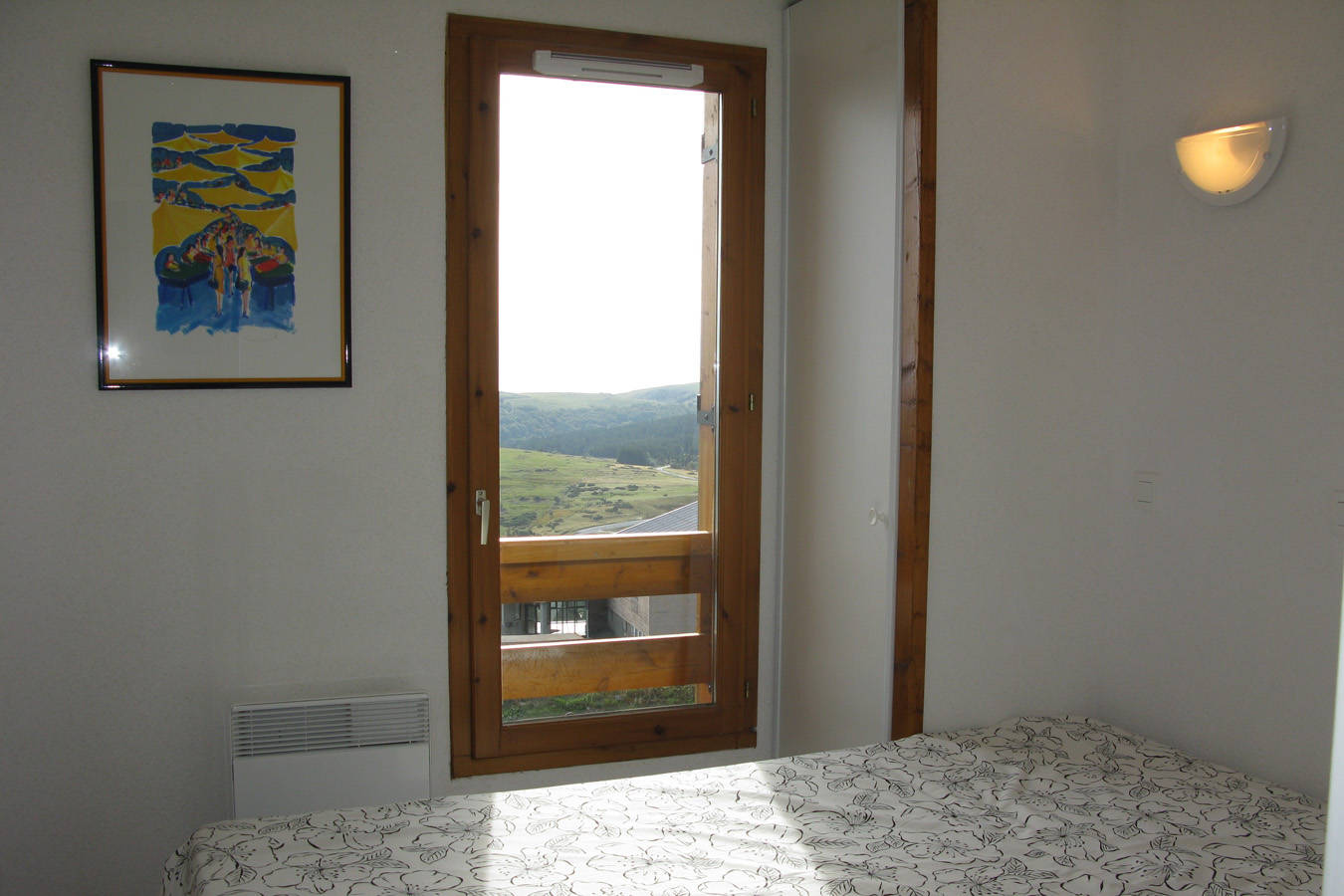 Appartement composé d’un séjour avec cuisine américaine équipée (lave-vaisselle, 4 plaques vitrocéramiques, micro-ondes, frigo, hotte), d’un canapé clic-clac (140) TV. Le séjour s’ouvre sur un balcon-terrasse plein sud, vue imprenable sur les pistes et la vallée (sans vis-à-vis) Une chambre avec lit de 140 et 2 placards, une deuxième chambre(…)