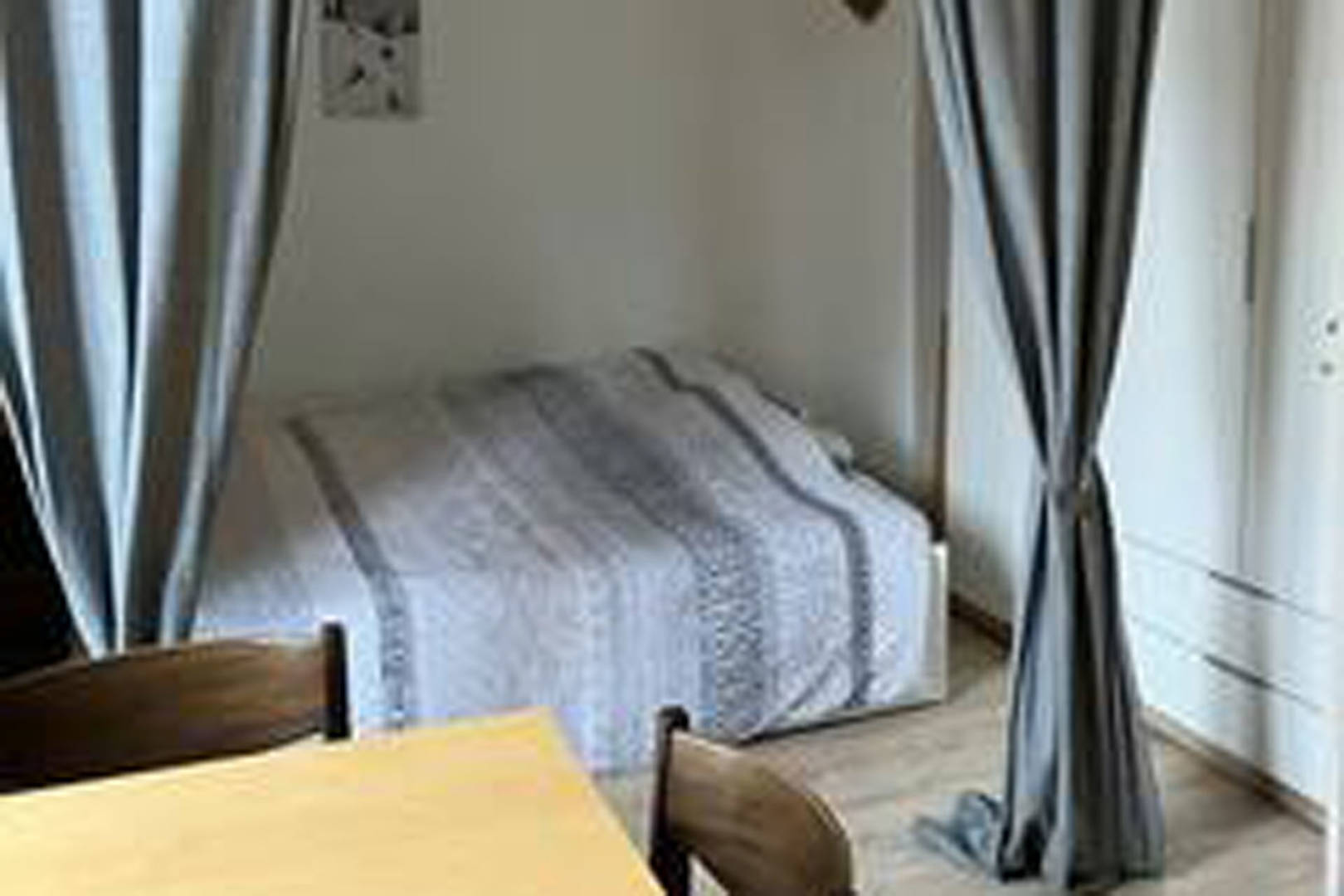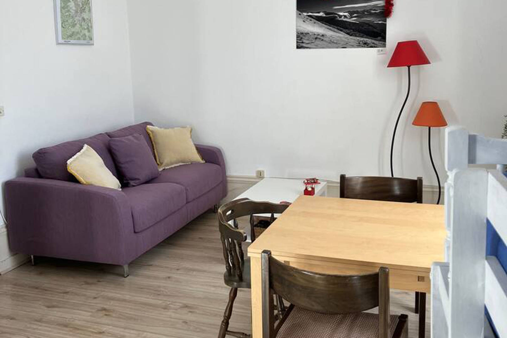 Vous pouvez venir à 4 avec possibilité de 6 personnes max. Le logement est composé d’une pièce principale avec un coin Salon-salle à manger et un espace nuit séparé par un rideau. La cuisine est indépendante et équipée.