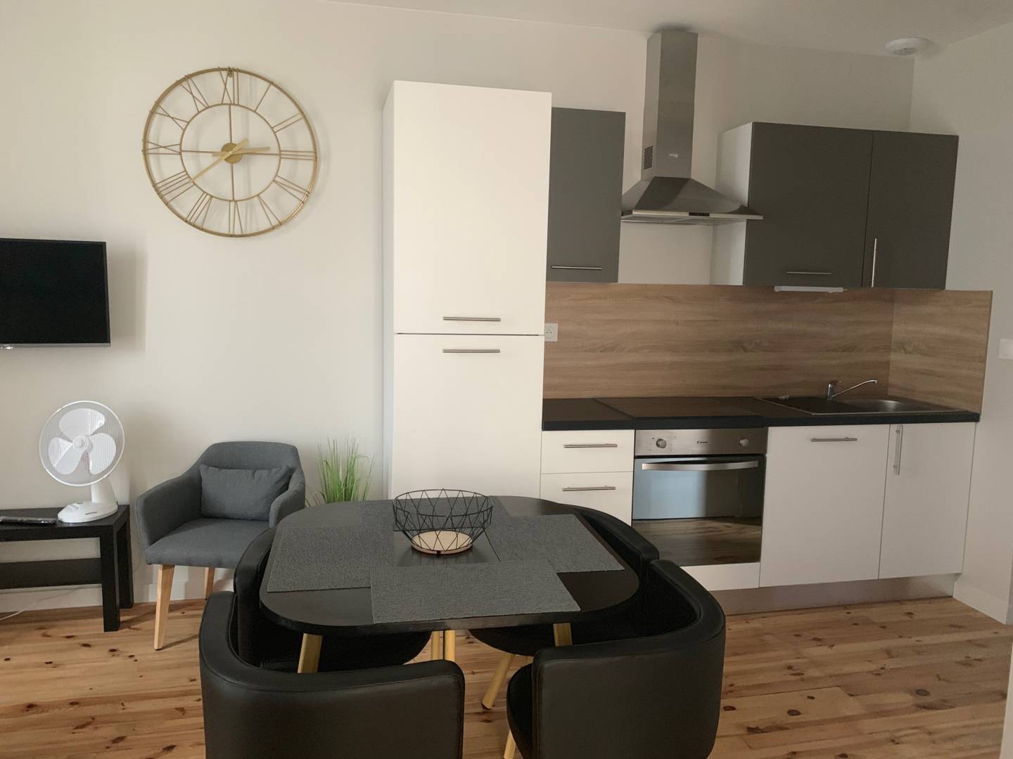 Vous y trouverez : • Séjour confortable avec coin repas • Cuisine équipée pour vos repas en toute autonomie • Chambre apaisante avec lit double • Salle de bain moderne avec receveur extra-plat • WIFI, climatisation, télévision écran plat • Ascenseur dans la résidence, stationnement facile à proximité • Jardin commun dans la résidence pour vos moments de détente