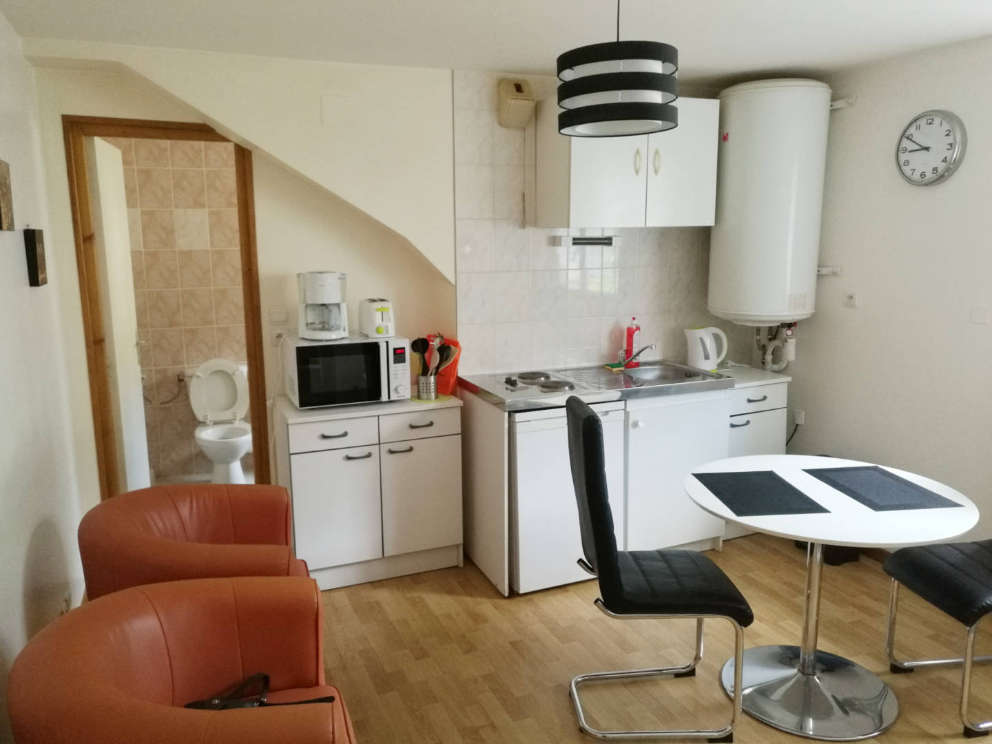 Salon avec canapé et coin cuisine très bien équipé, une chambre séparée avec lit 140×190, salle d’eau avec douche et WC. Premier étage sans ascenseur.