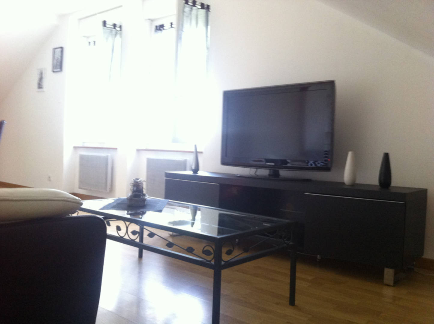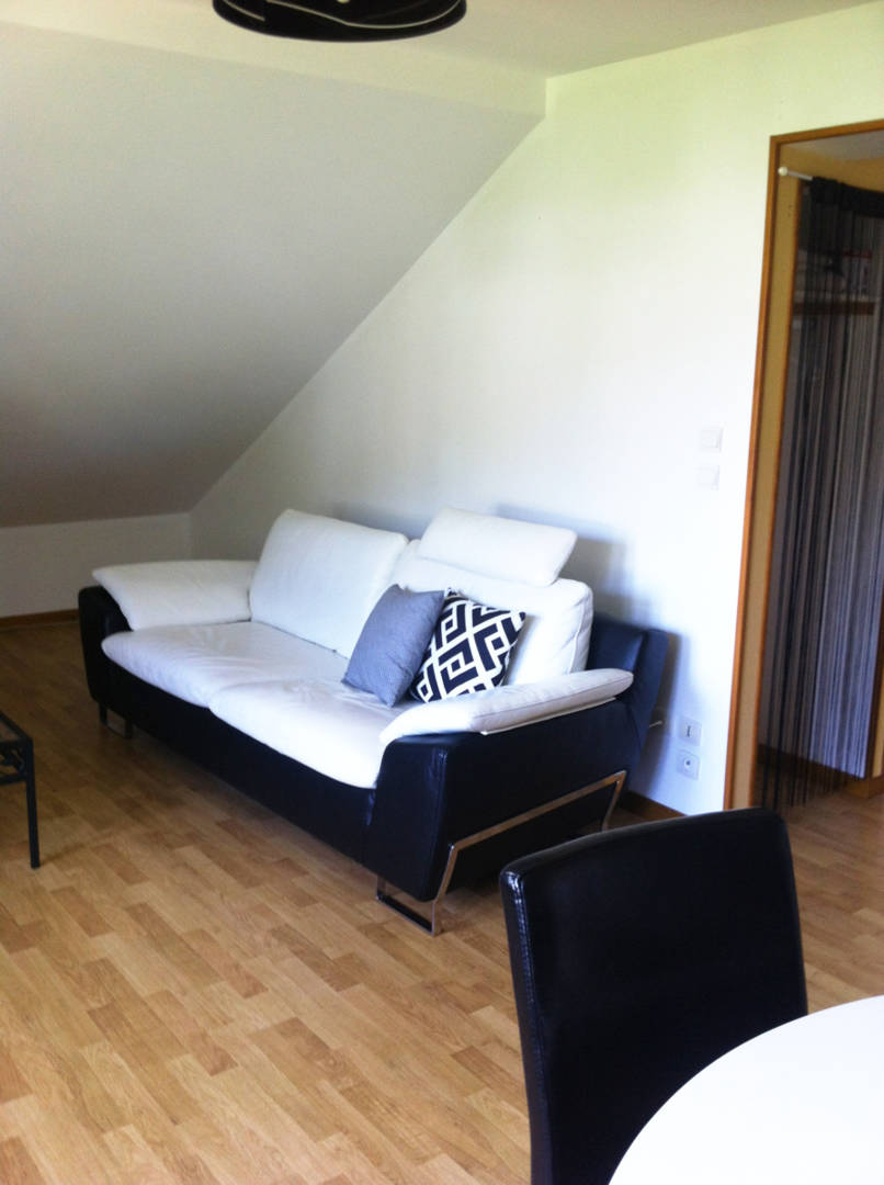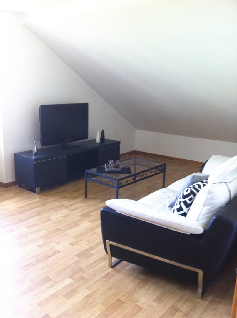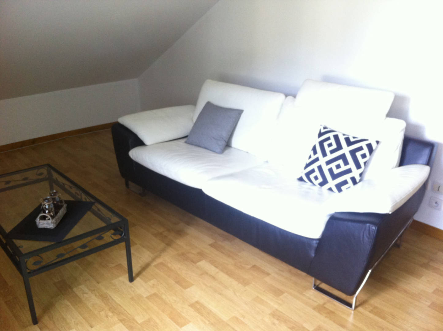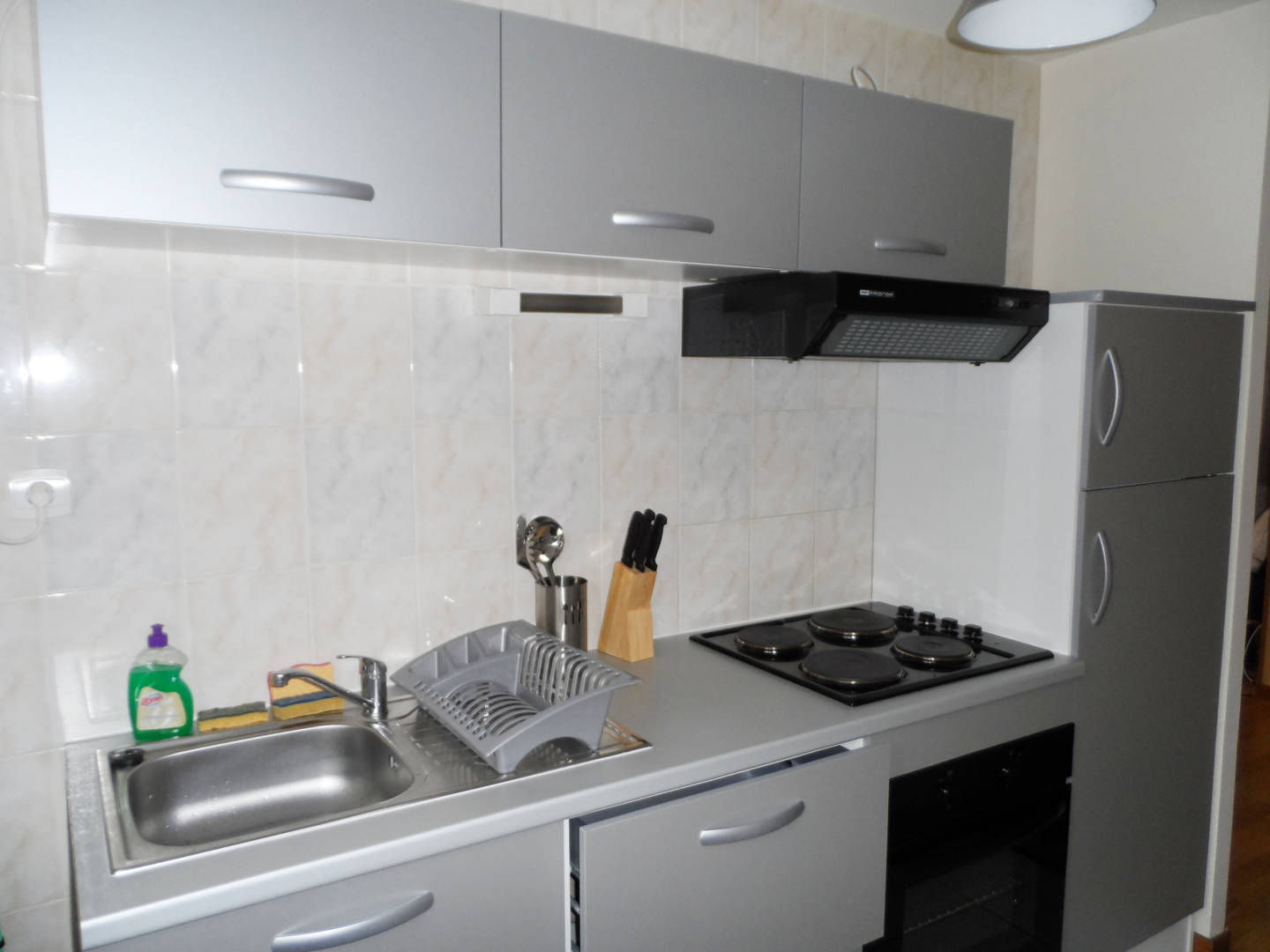 Salon avec canapé et cuisine très bien équipée, une chambre séparée avec lit 160×200, salle d’eau avec douche et WC.