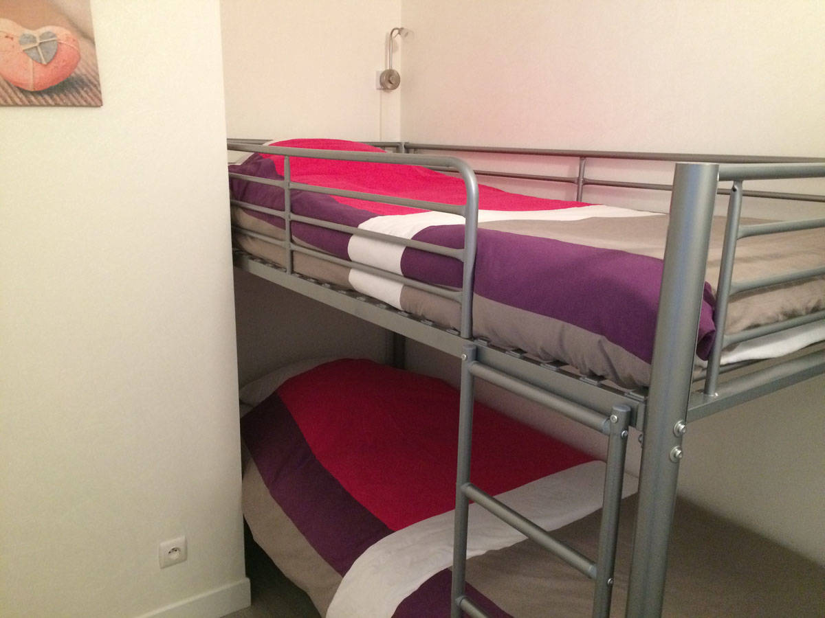 Situé au deuxième étage d’un immeuble de standing avec ascenseur, Exposé Sud-Est, il est très lumineux et bénéficie d’un grand balcon. Ensemble moderne de 38 m², il est composé d’une chambre avec un lit double, d’une chambre avec 2 lits superposés, d’une cuisine intégrée, d’un salon et d’une salle(…)