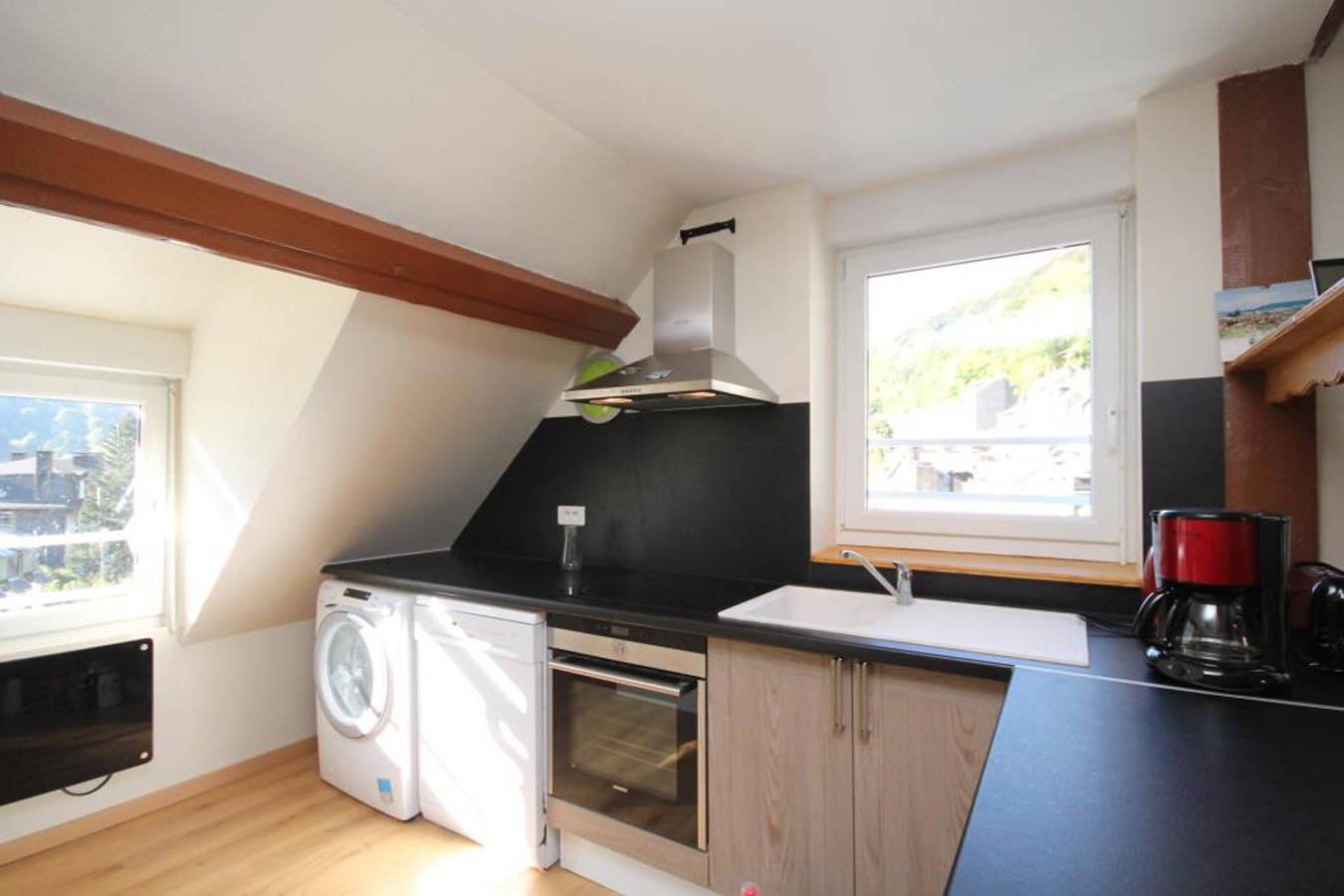 L’appartement lumineux d’une capacité de 5 personnes maximum est situé au 4° et dernier étage sans ascenseur composé d’une pièce à vivre avec cuisine américaine équipée, une chambre avec 1 lit 2 personnes en 140, une seconde chambre avec 1 lit 2 personnes en 140 et 1 lit simple, une salle d’eau (douche) et WC indépendant. Lave-linge et lave-vaisselle. Prestations proposées en supplément : location linge de lit, linge de toilette, matériel de puériculture, service ménage pendant et fin de séjour … Le plus : vues sur le Sancy, le Capucin, le Puy Gros.