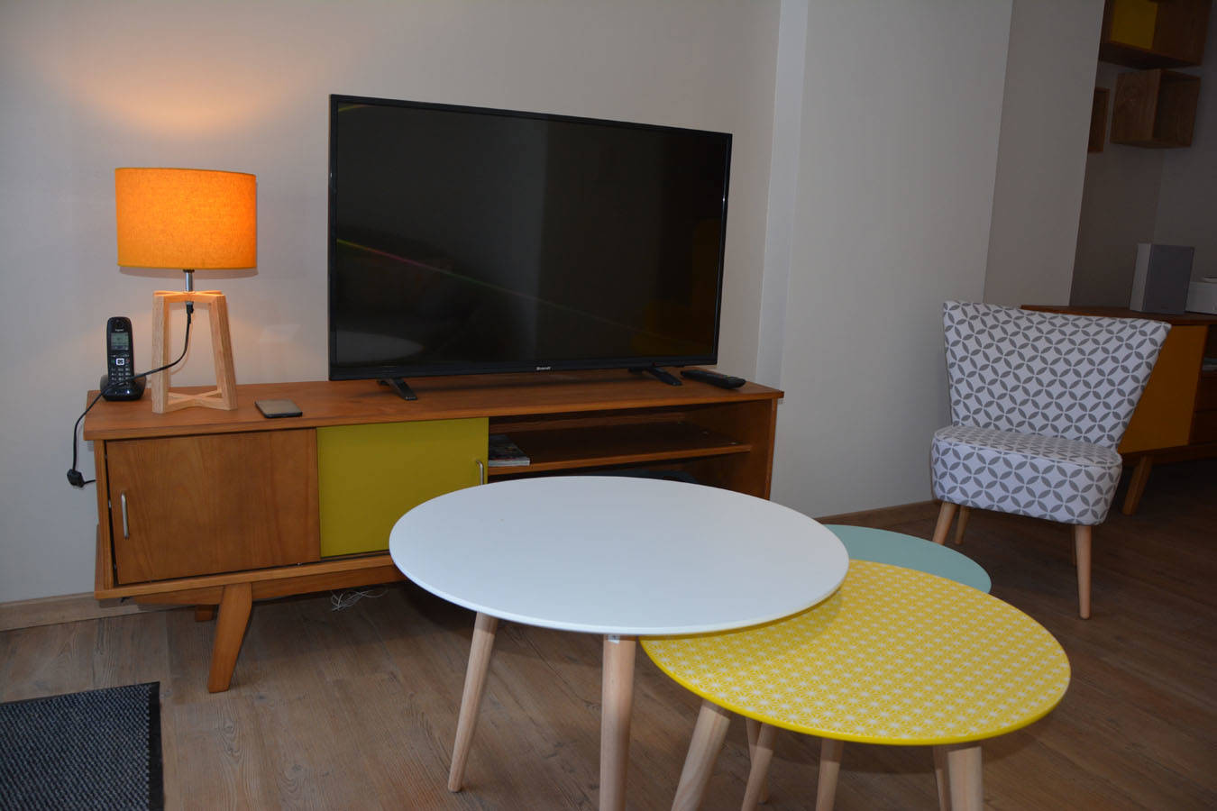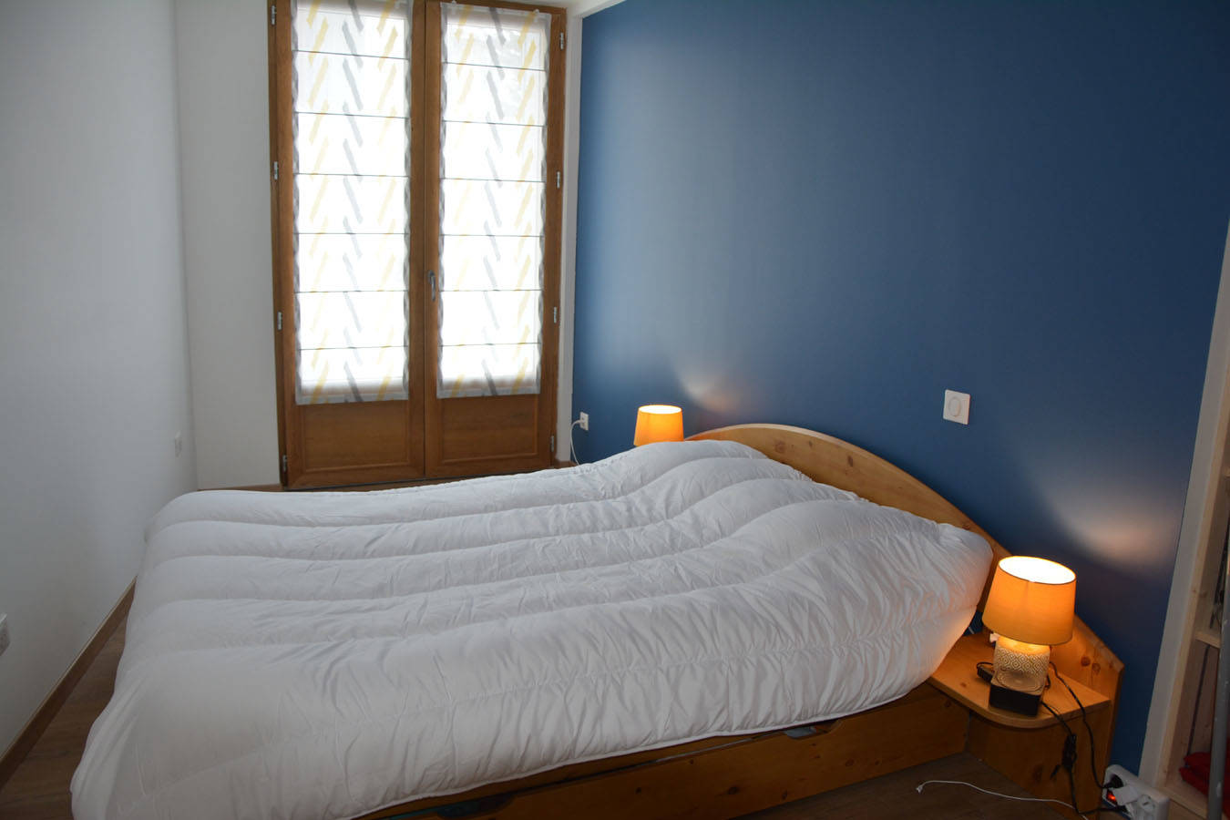 1 chambre avec 1 lit de 140 cm, 2 lits superposés de 90, rangement, tiroir-lit, TV, jeux pour enfants.