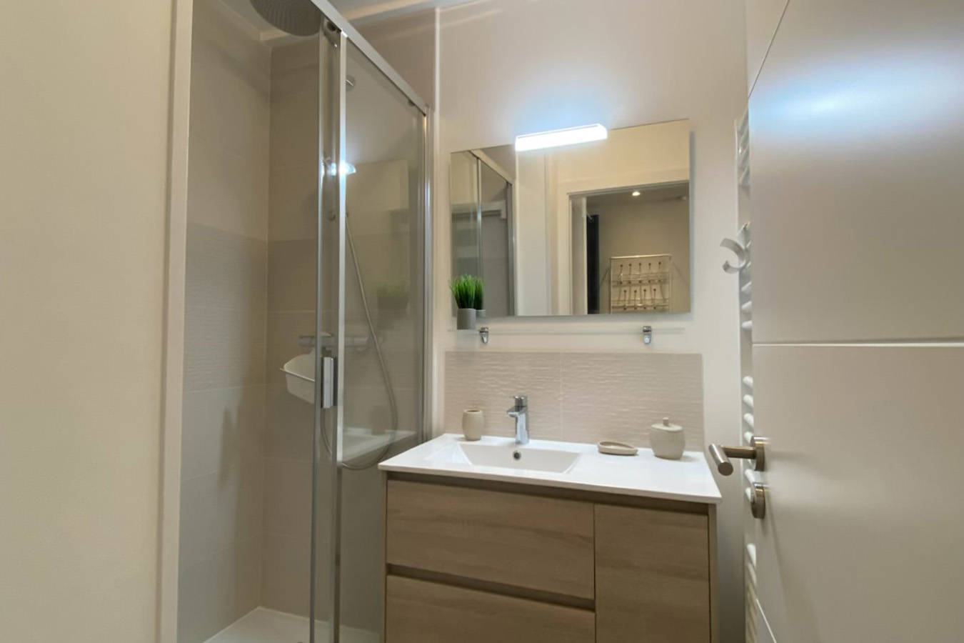 – Une salle d’eau privative avec douche à l’italienne, un sèche serviette et meuble sous vasque pour ranger vos effets personnels.