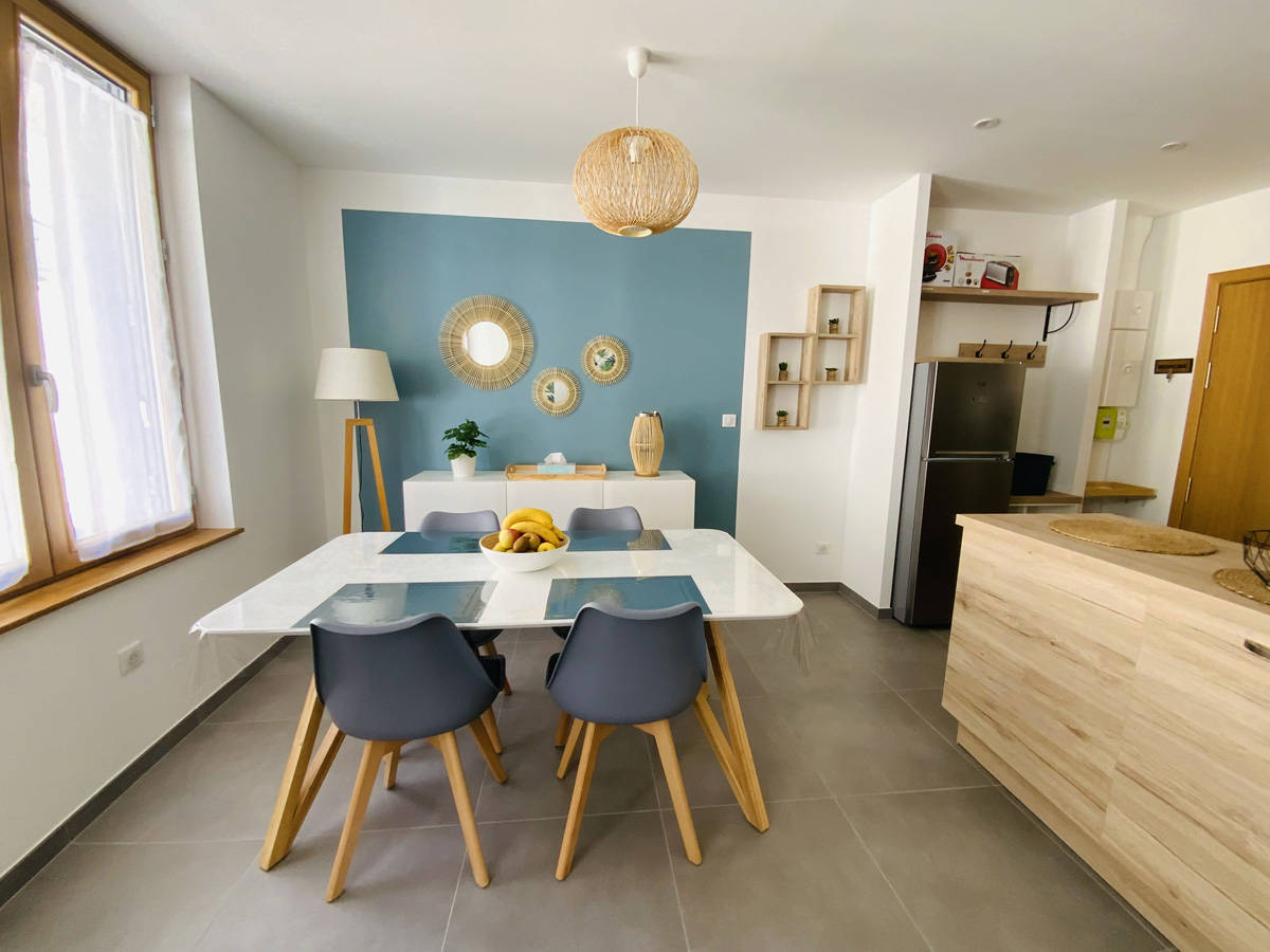 – Un coin repas avec table rectangulaire et 4 chaises. Un grand buffet et un vaste placard mural offrant de nombreux rangements pour un confort optimal.