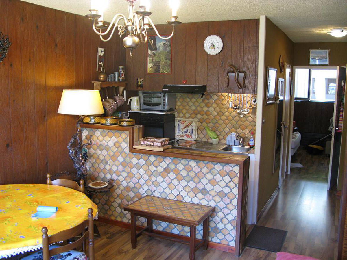 Séjour avec grande baie vitrée et vue imprenable sur nos montagnes agencé avec kitchenette toute équipée, loggia. Chambre indépendante avec 1 lit 140 + 1 lit enfant (maxi 18 ans), armoire, penderie, table. Salle d’eau : baignoire avec douche, WC. Local à skis. A 30m des navettes gratuites pour les(…)