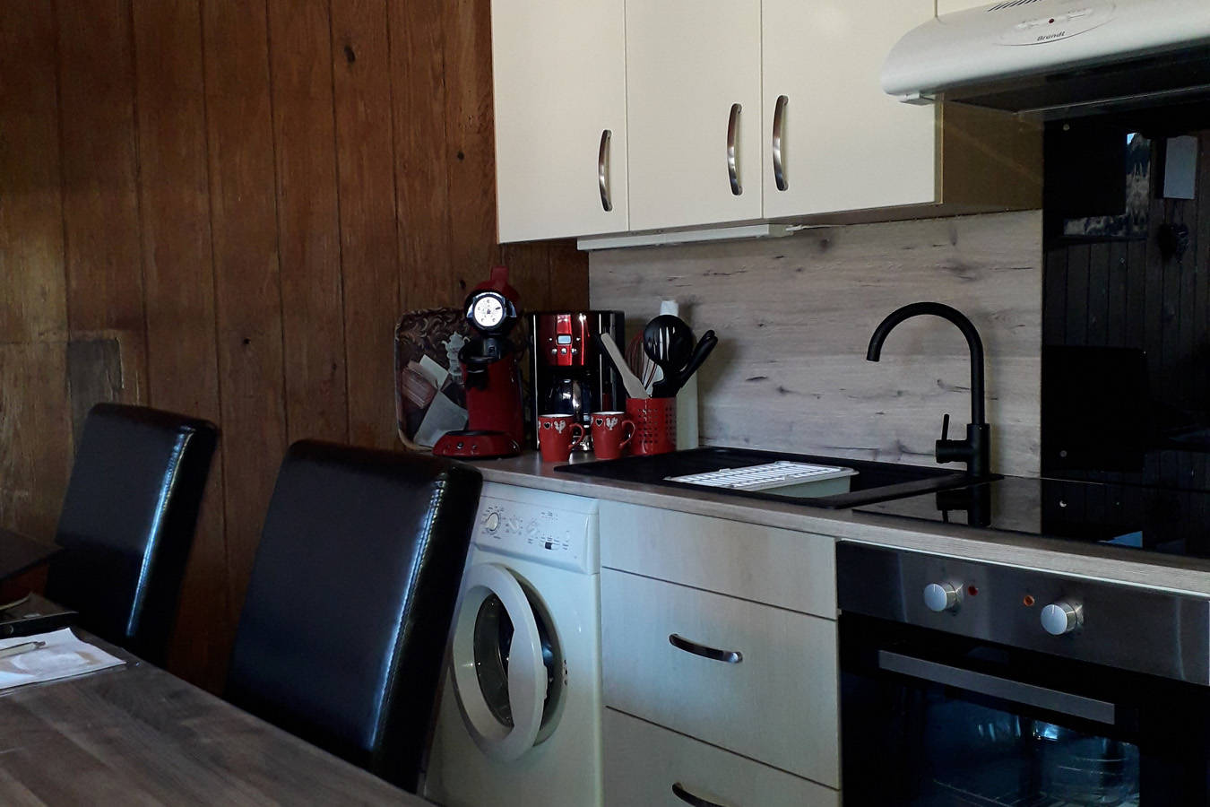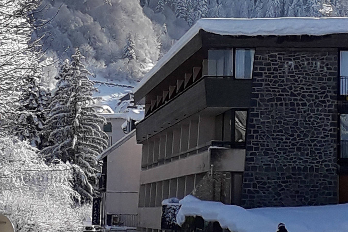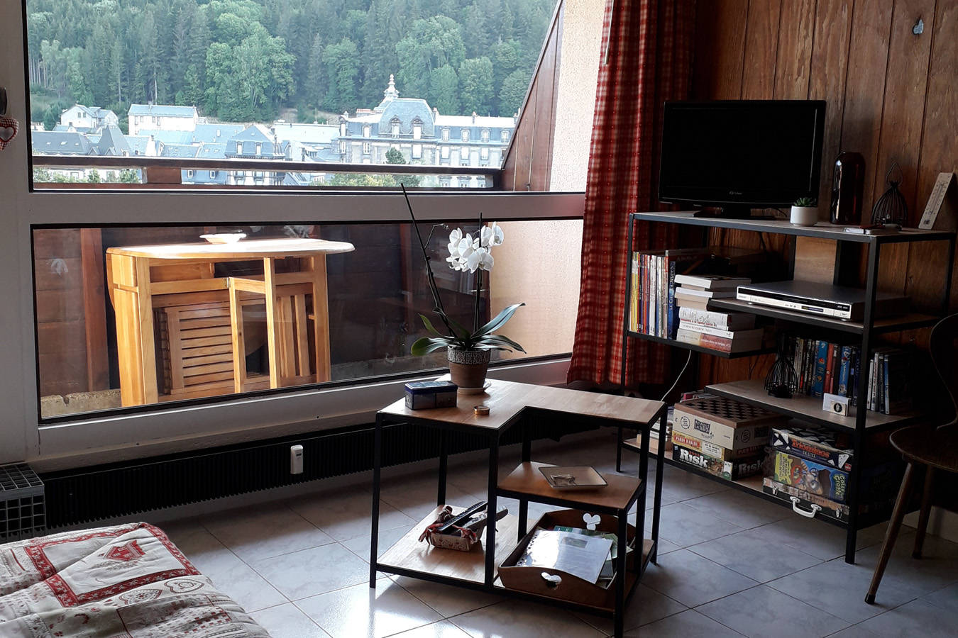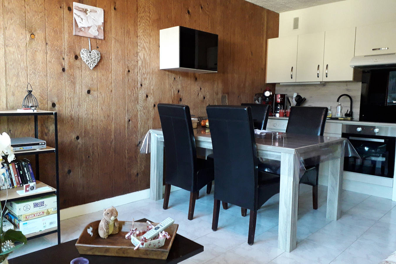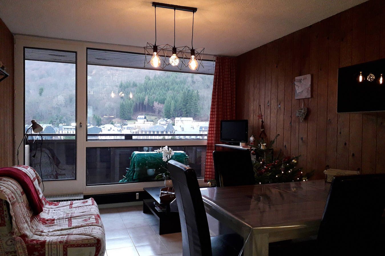 Il est composé d’une entrée avec grands placards, donnant sur la pièce de vie offrant l’accès à un balcon qui surplombe le Mont-Dore.