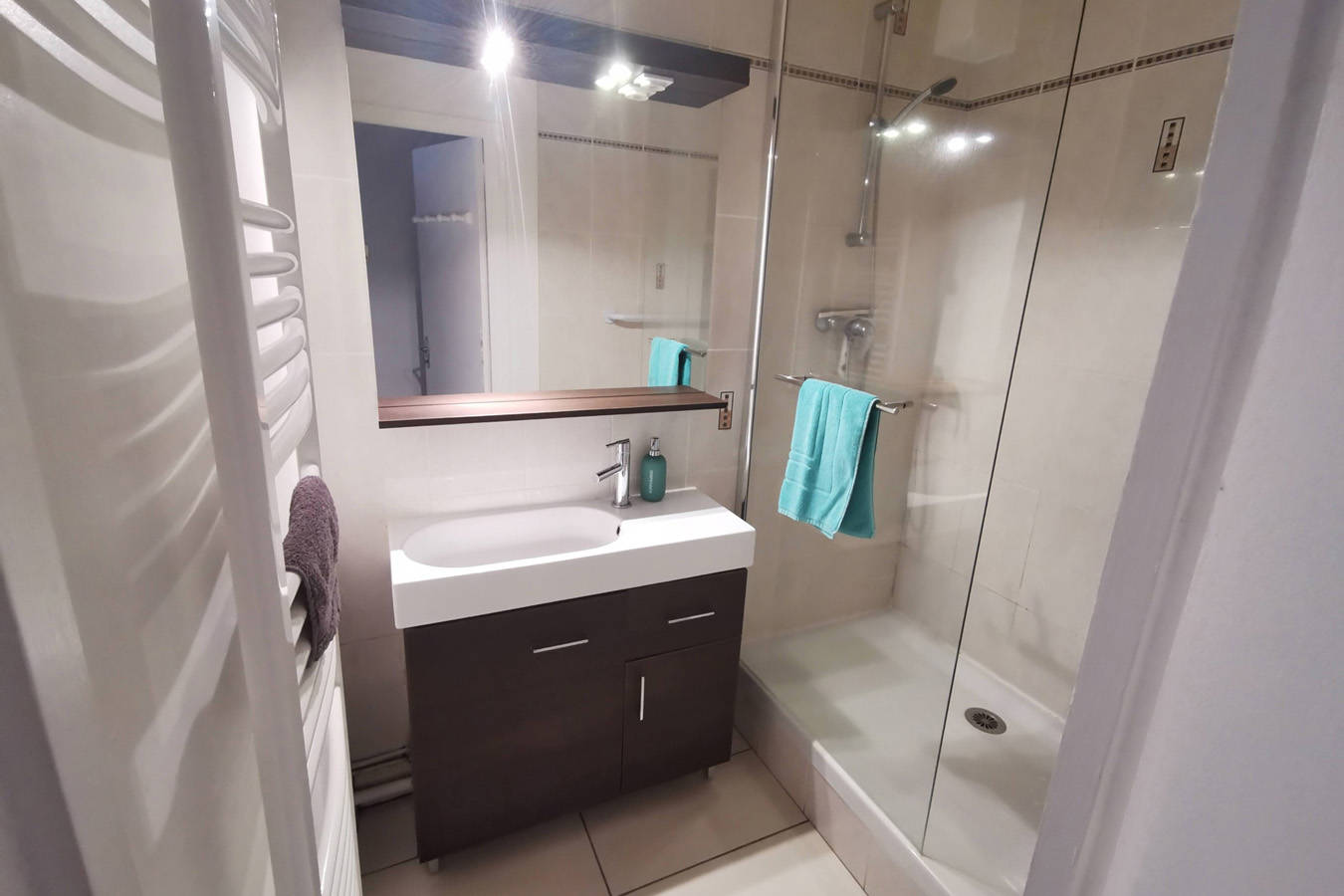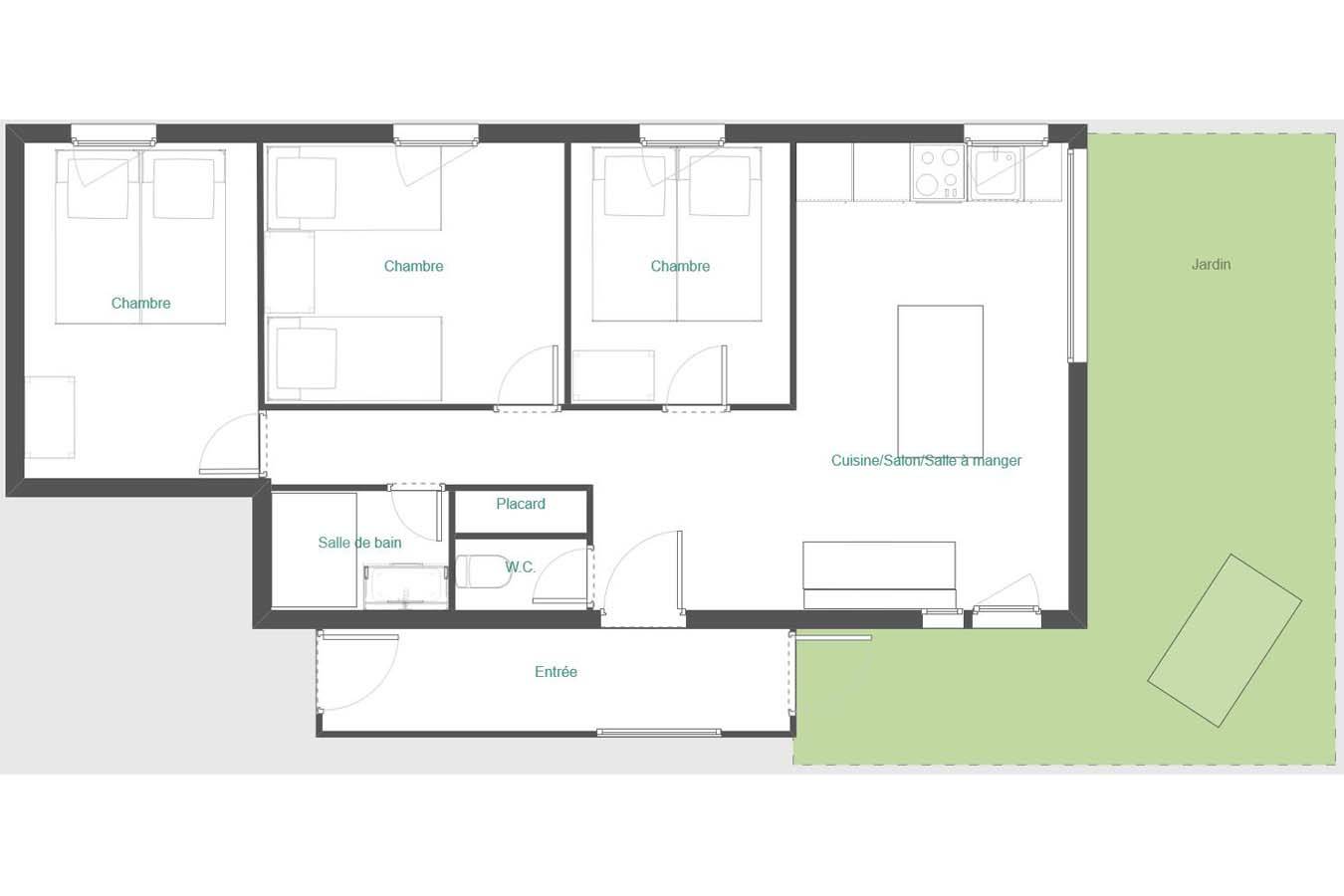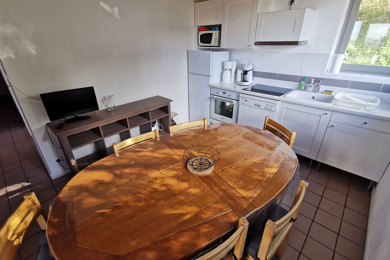 L’appartement comprend 3 chambres, une salle d’eau, un WC séparé, un coin salon et possède une cuisine avec plaques vitrocéramiques, un four, un lave-vaisselle, un four à micro-onde et un réfrigérateur.