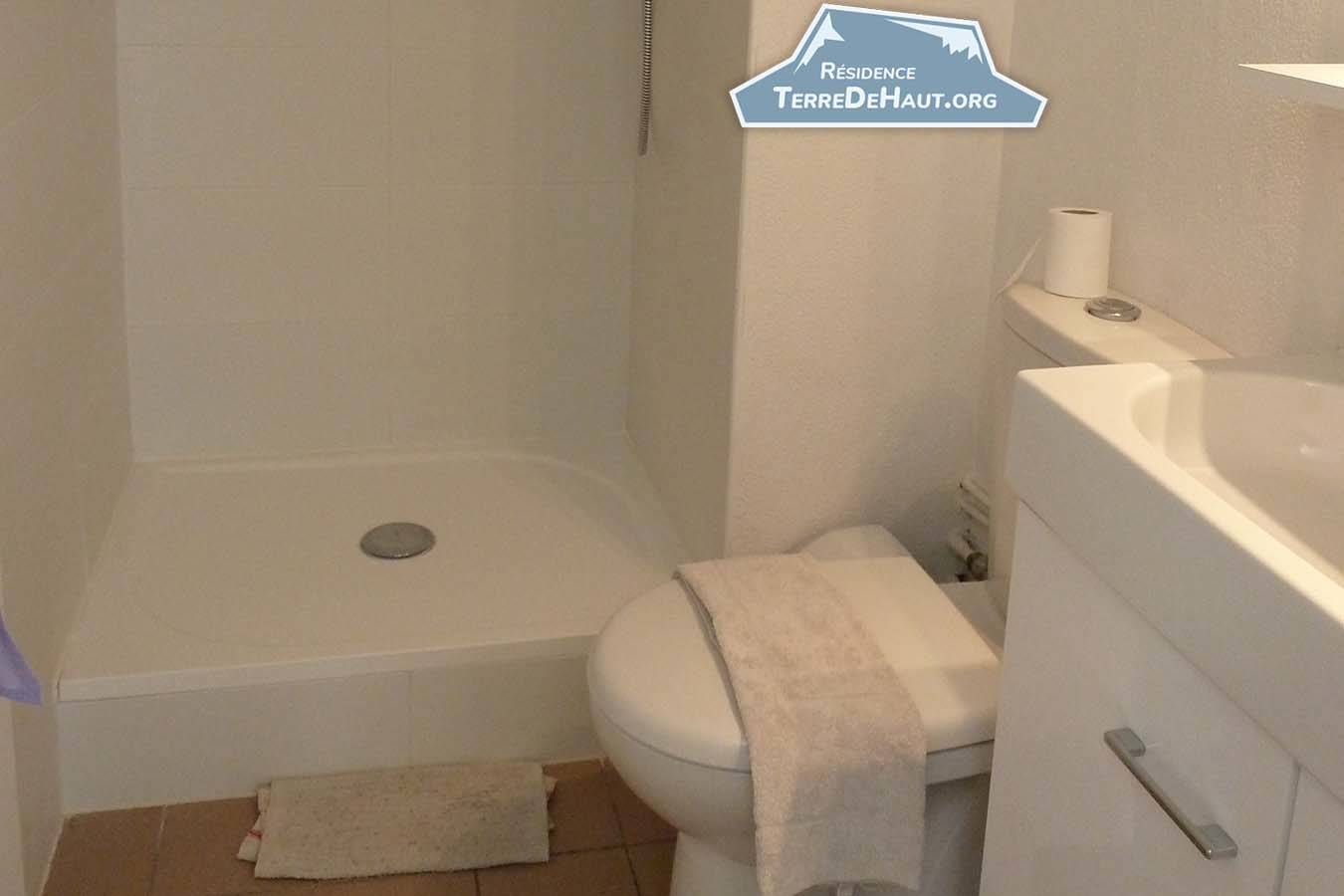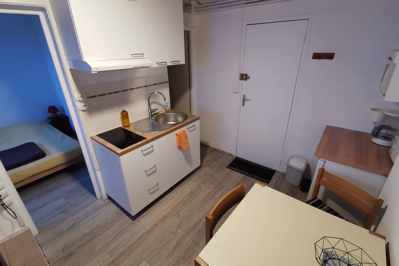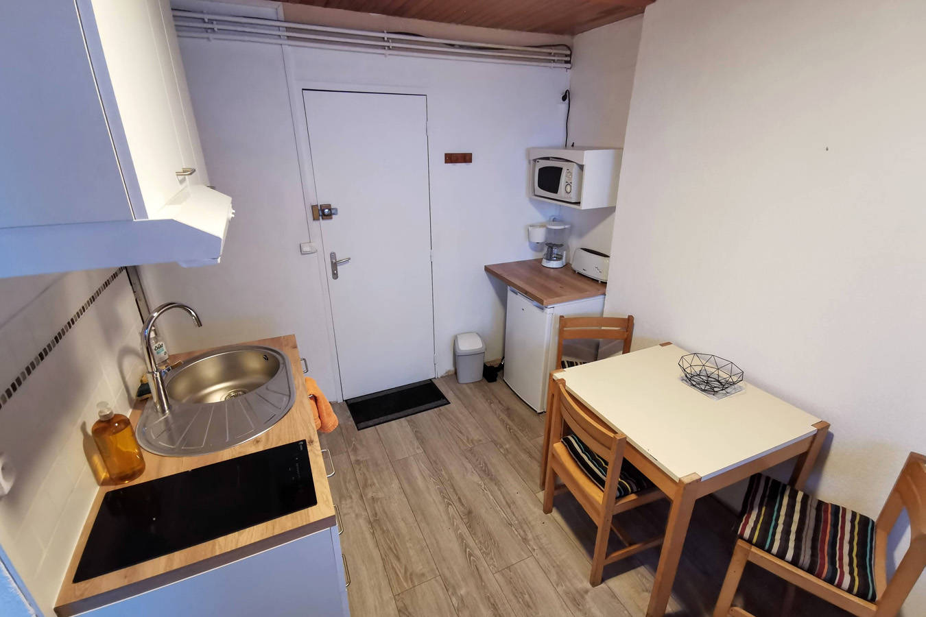L’appartement comprend 2 chambres, une salle d’eau/WC, et possède une cuisine avec plaques à induction, un four à micro-onde et un réfrigérateur.