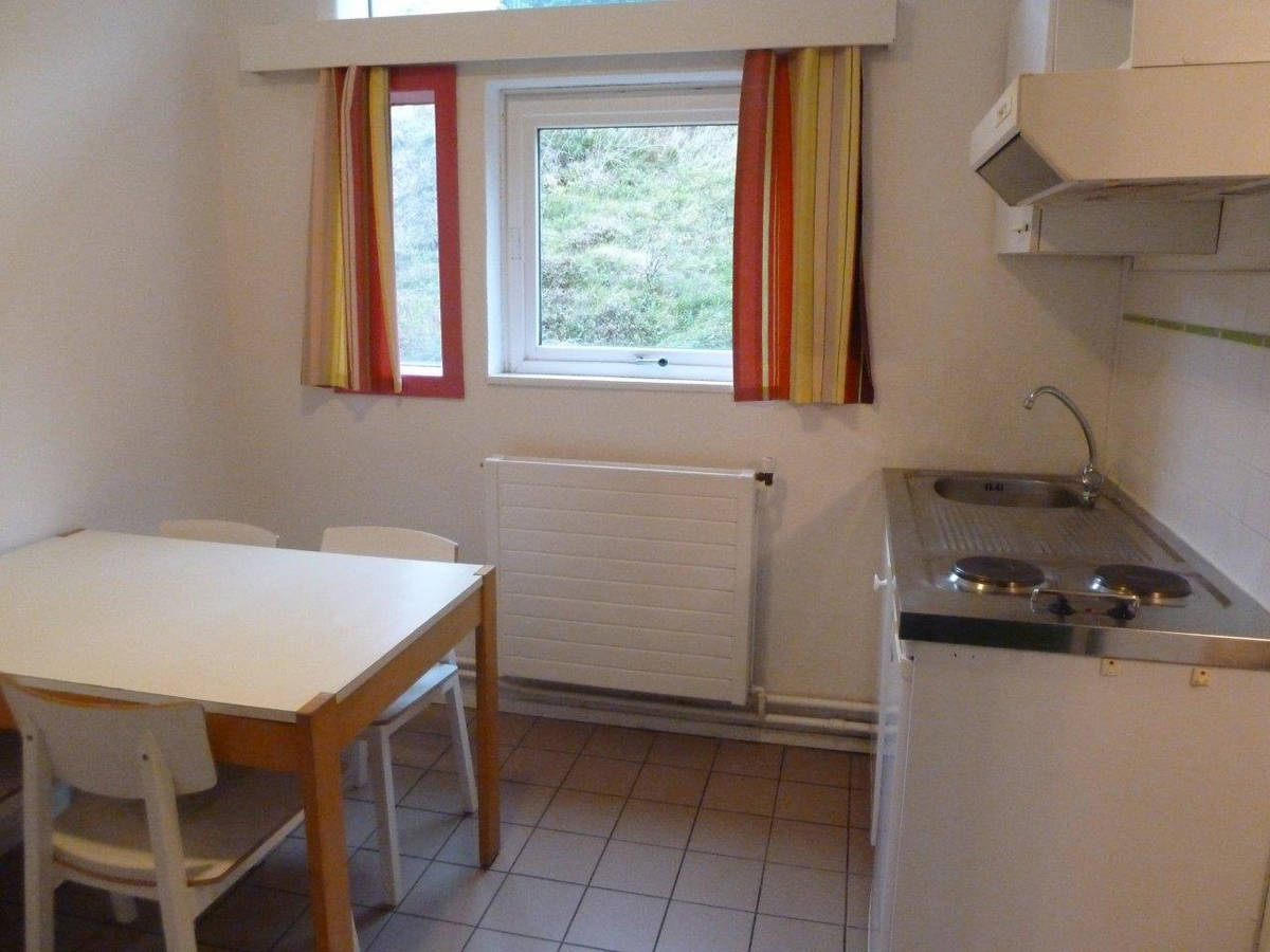 L’appartement comprend 2 chambres, une salle d’eau/WC, et possède une cuisine avec plaques électriques, un four à micro-onde et un réfrigérateur.