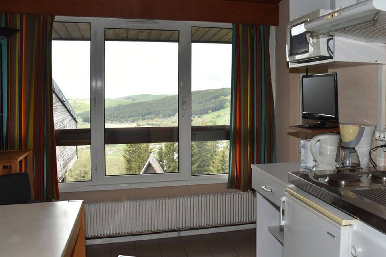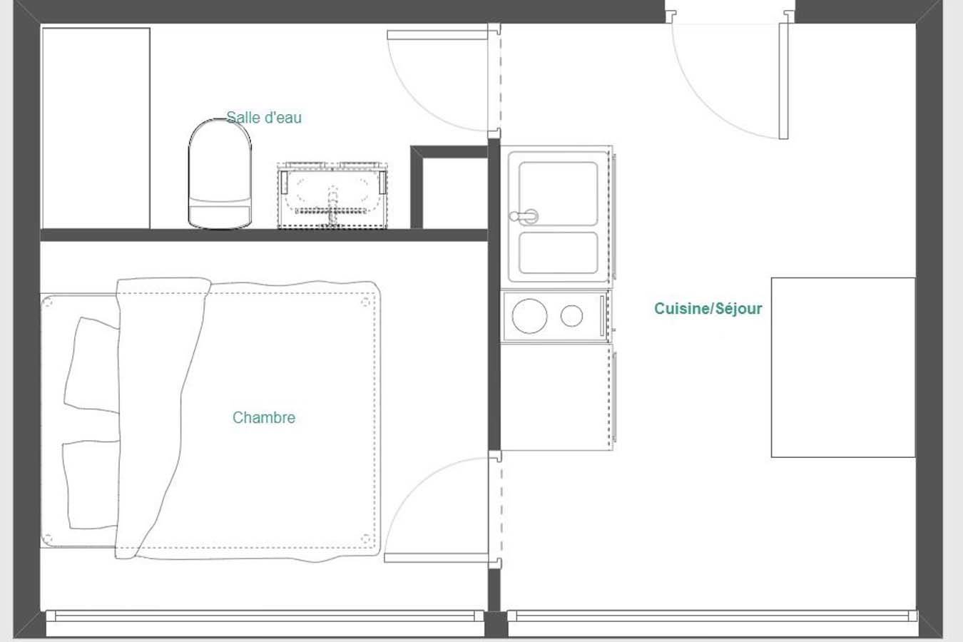 L’appartement comprend 1 chambre, une salle d’eau/WC, et possède une cuisine avec plaques électriques, un four à micro-onde et un réfrigérateur.
