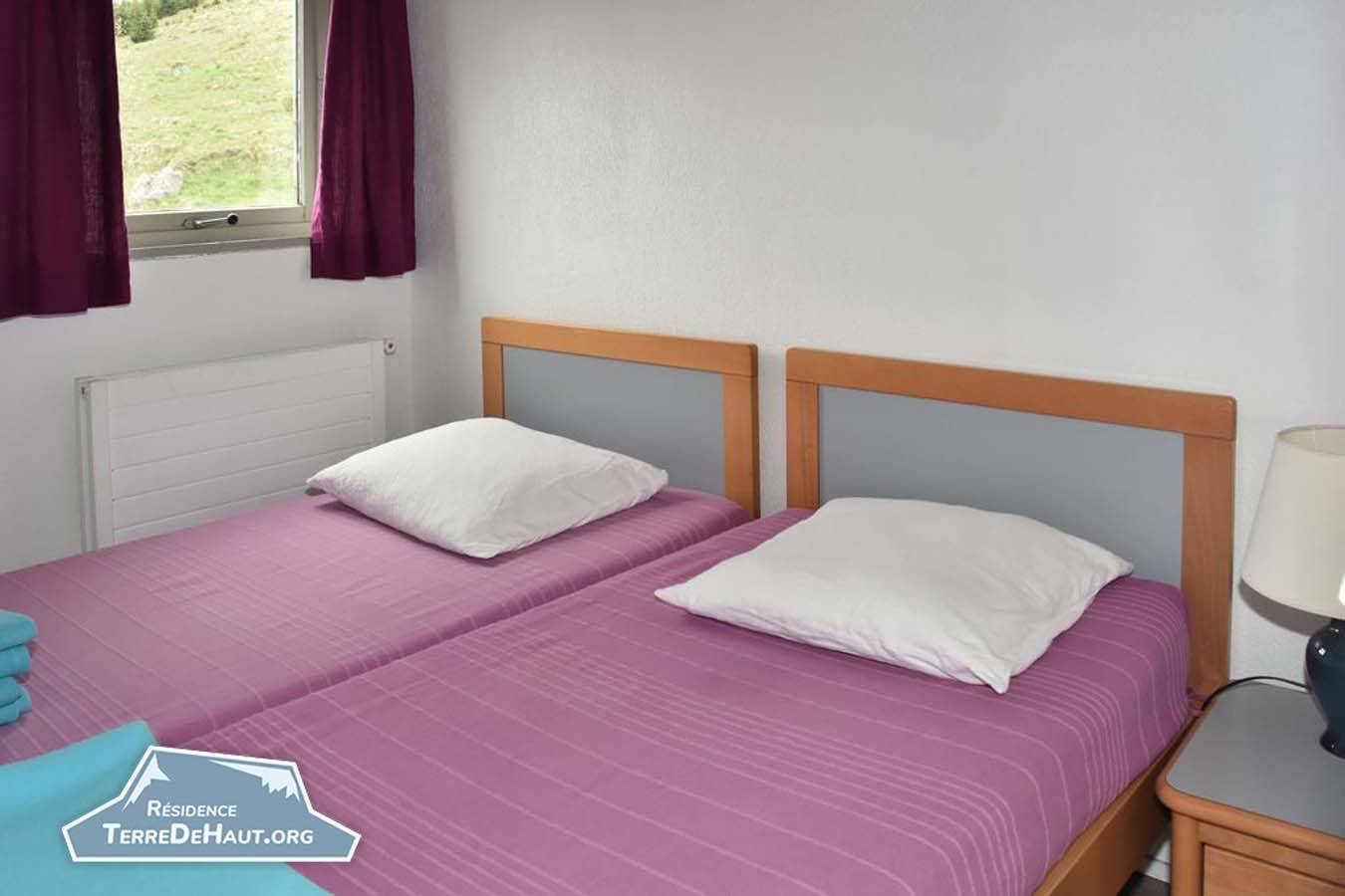 L’appartement comprend 2 chambres, une salle d’eau/WC, et possède une cuisine avec plaques électriques, un four à micro-onde et un réfrigérateur.