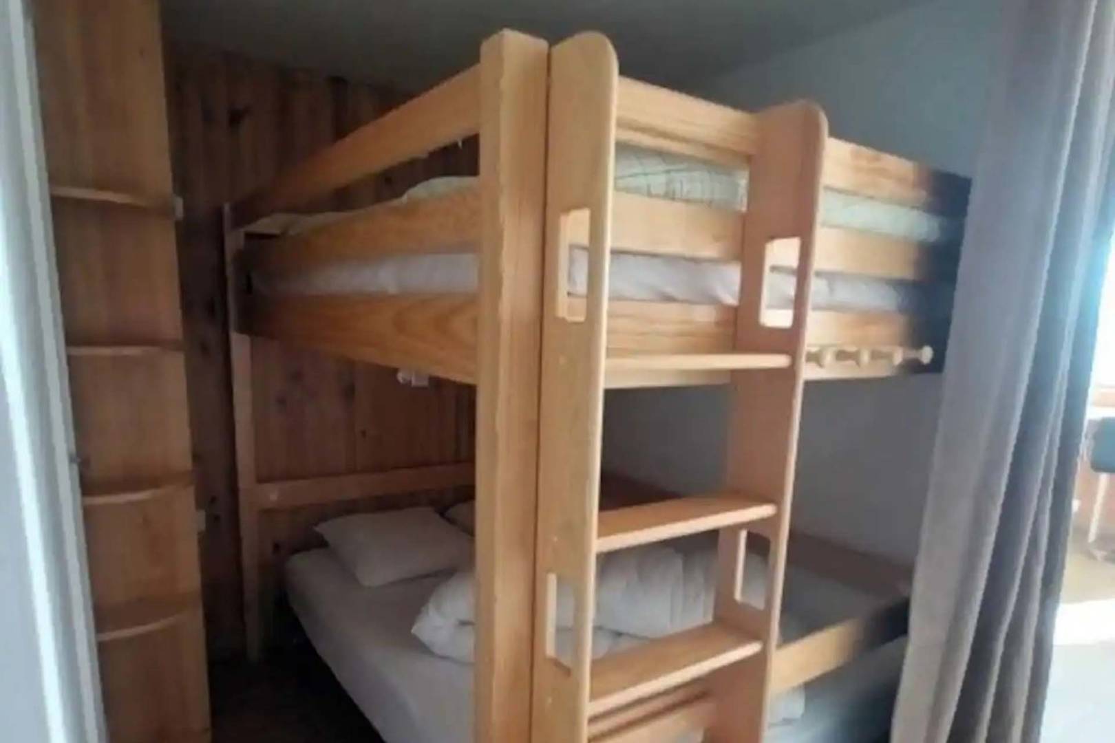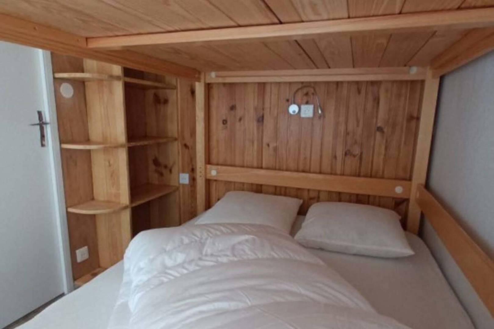 Une cabine ouverte avec 2 lits superposés de 140cm avec rideaux occultants