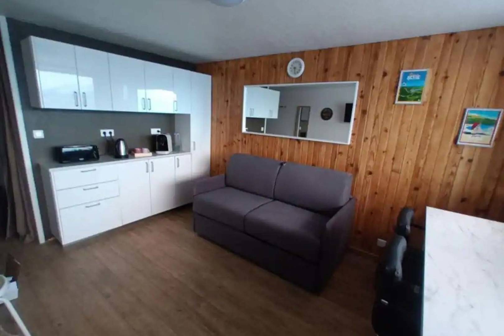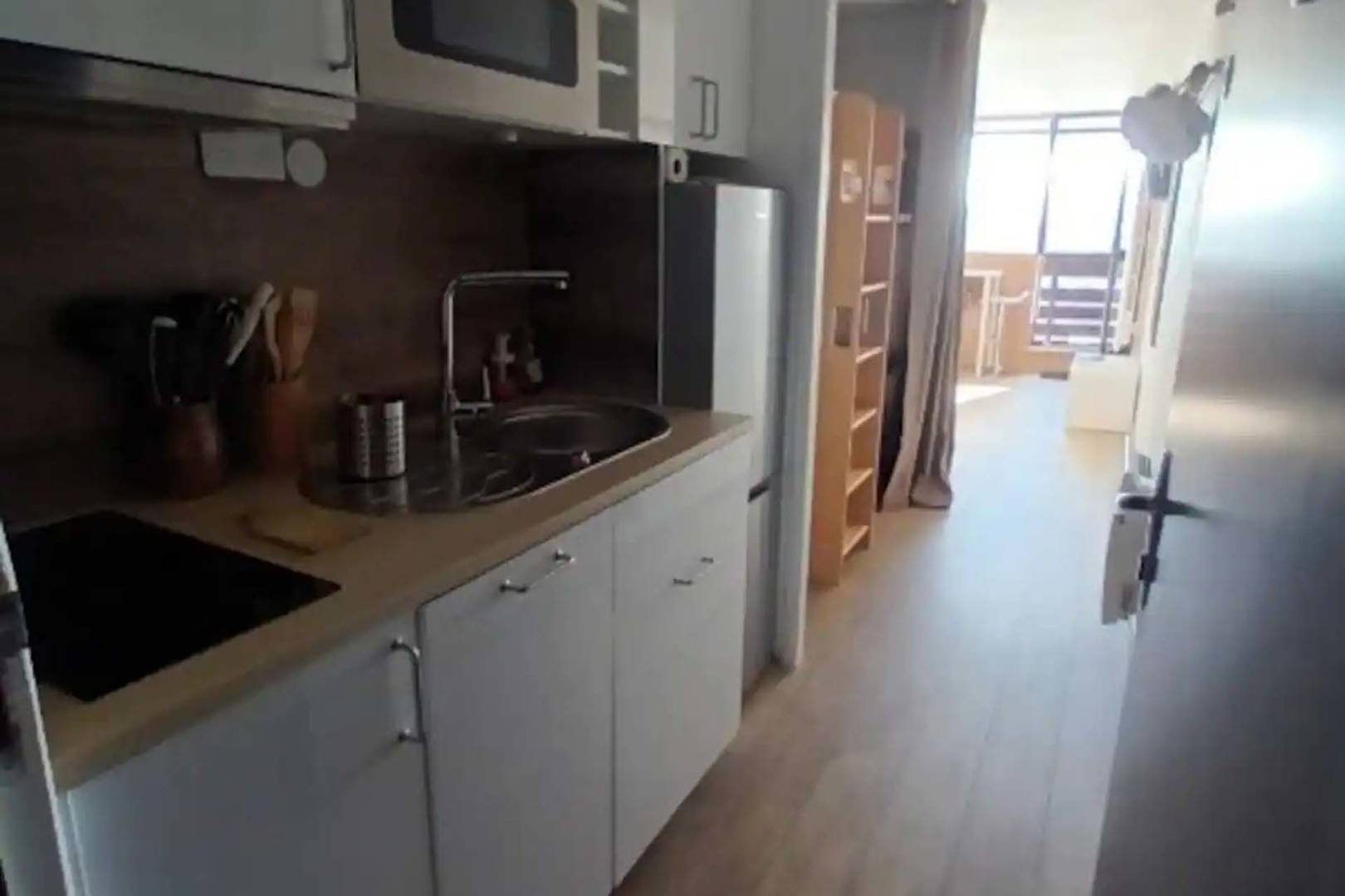Le studio de 24m2, entièrement rénové, se situe au 16ème étage avec une vue superbe sur la station, le lac des Hermines, et les Monts du Cantal.