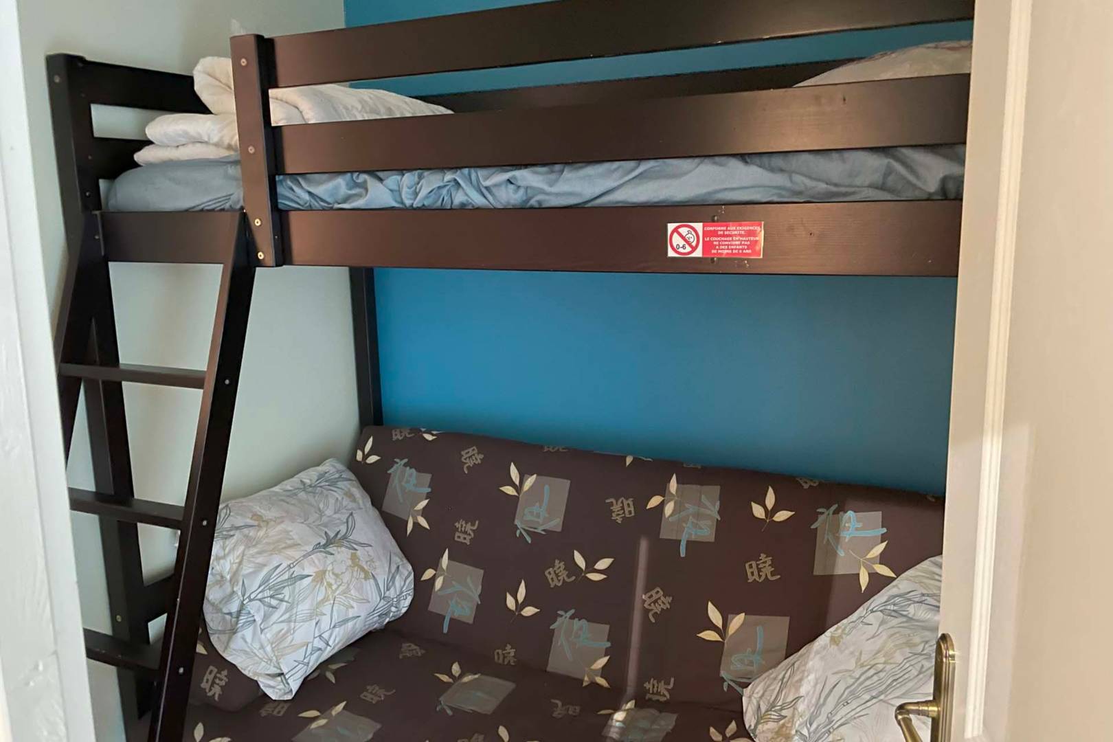 Composé d’une pièce de vie (cuisine équipée/espace repas/salon TV), une chambre avec un lit double, une chambre cabine avec lit mezzanine 1 personne et canapé convertible de type clic clac, une salle(…)