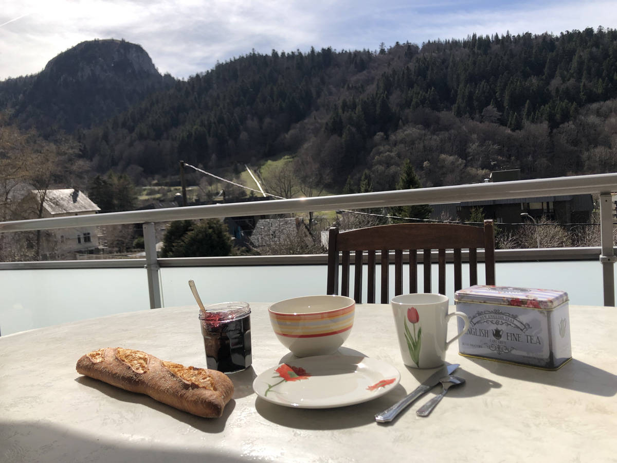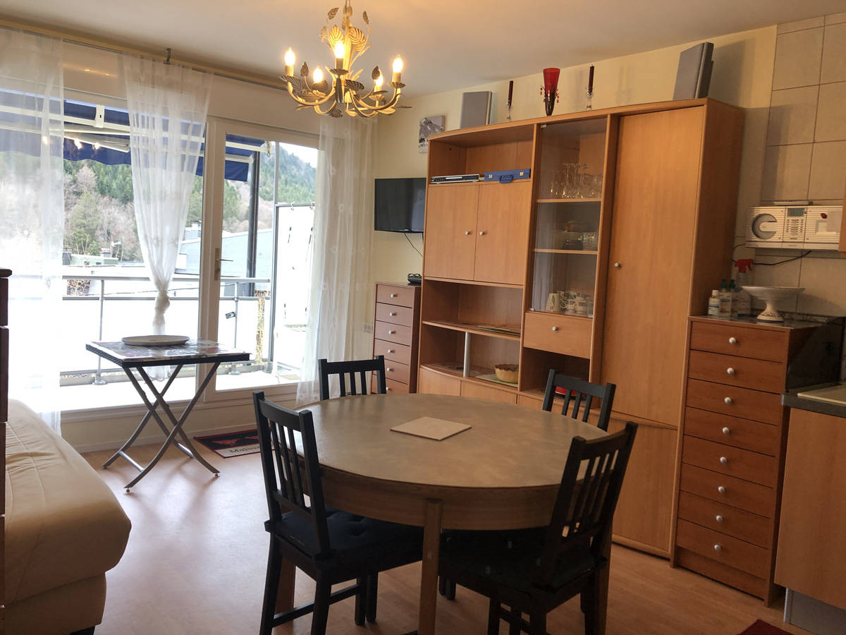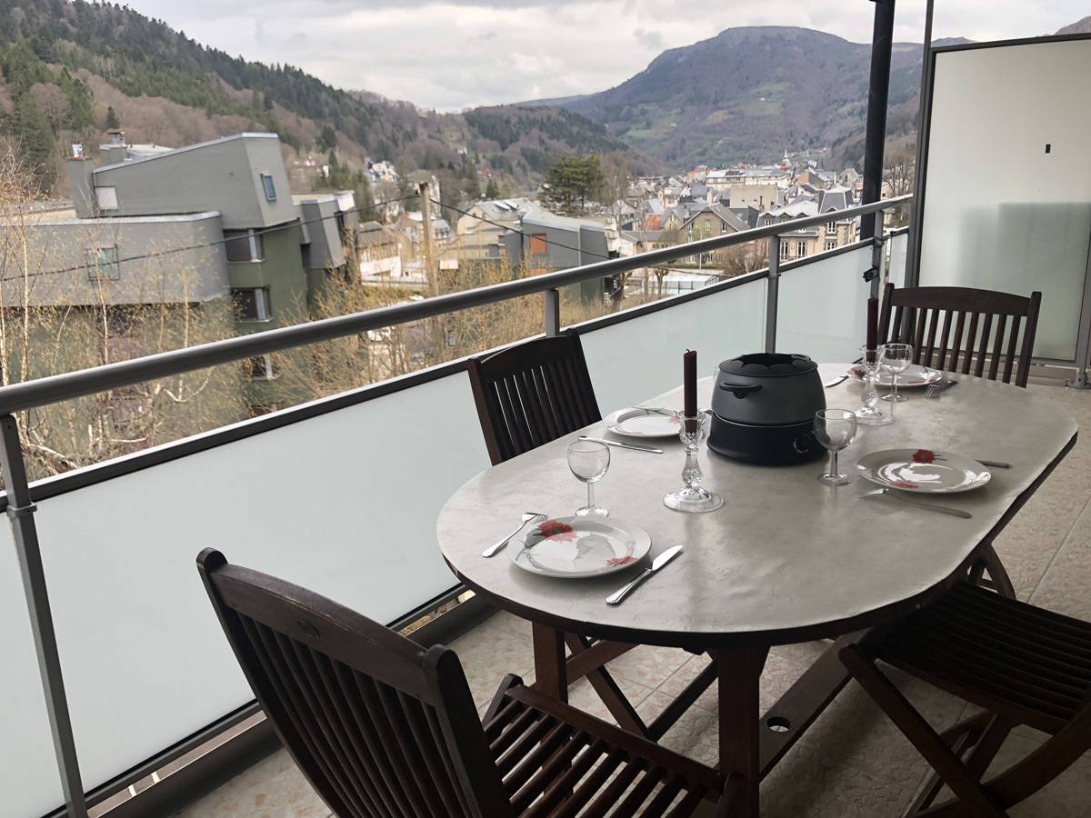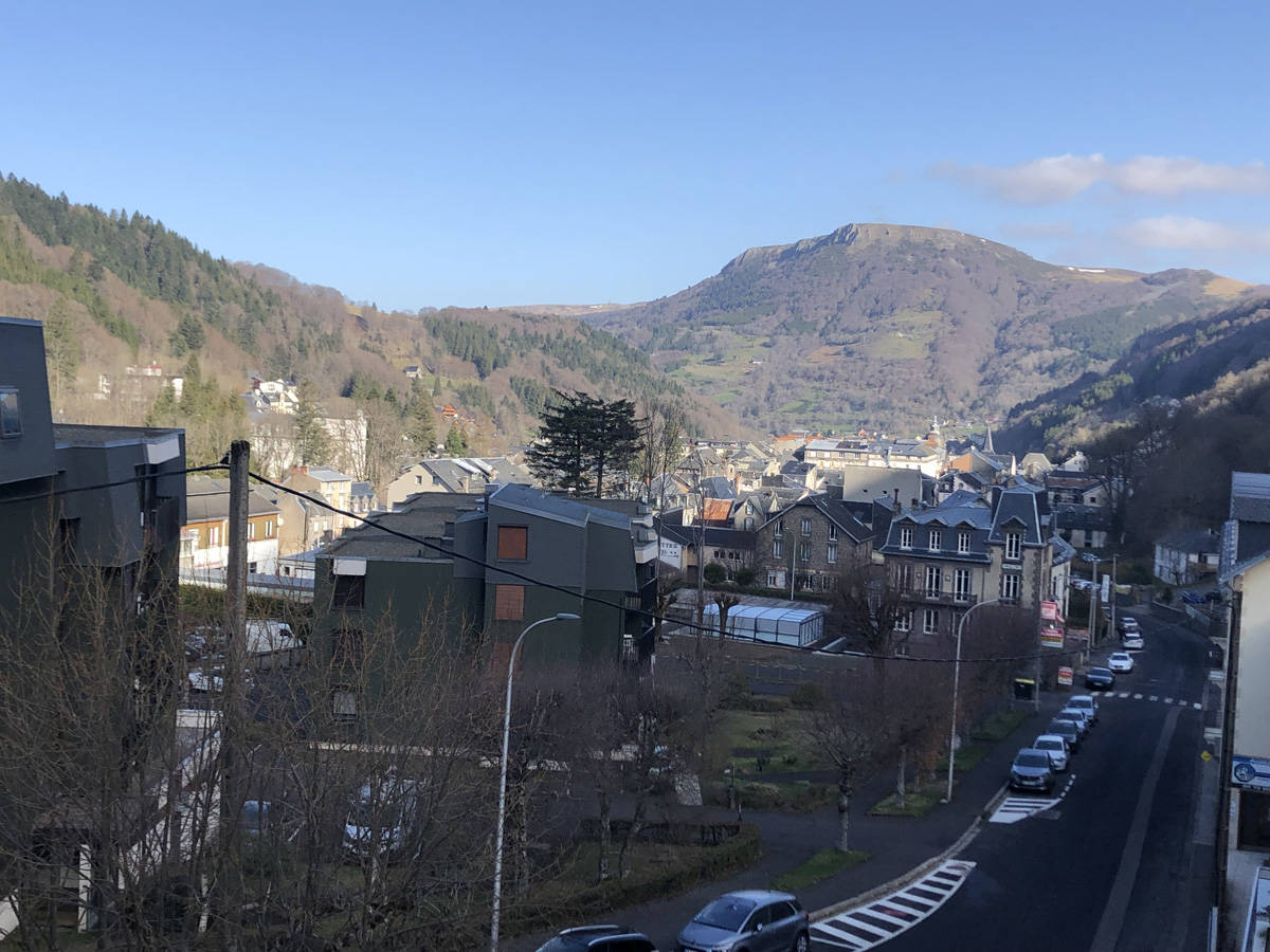 Appartement 4/5 personnes comprenant séjour avec coin cuisine, 2 chambres avec lits de 140 cm et un coin montagne avec un lit de 90 cm, salle d’eau, toilettes séparées. Grand balcon avec salon de jardin, vue imprenable sur le Capucin et le Puy Gros. Matériel bébé sur demande WIFI. Cave à disposition. Possibilité location de linge et forfait ménage proposés avec supplément. Navette thermale gratuite à la sortie de l’immeuble.