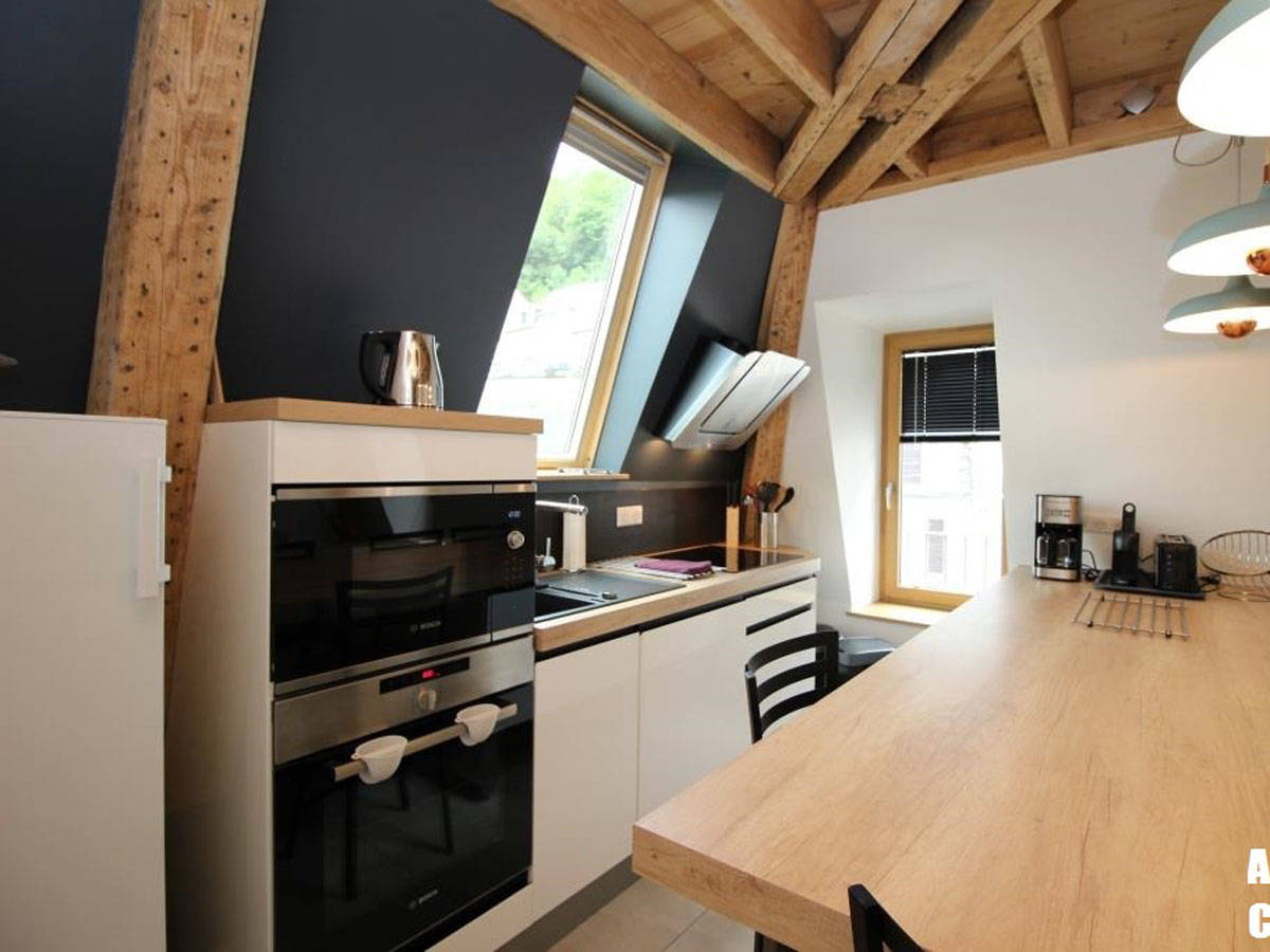 – une cuisine bénéficiant d’une vue sur les montagnes, avec électroménager de qualité (four micro-onde, four, plaques de cuisson, réfrigérateur, congélateur, lave-vaisselle, cafetière, bouilloire, grille-pain, appareil à raclette, à fondue, robot multifonction…) – une chambre avec literie en 140, grande penderie.