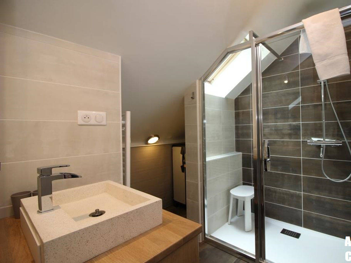 – une salle d’eau (accès 2 marches) avec douche italienne, lave-linge et sèche-linge – un WC indépendant à l’entrée (accès 2 marches)