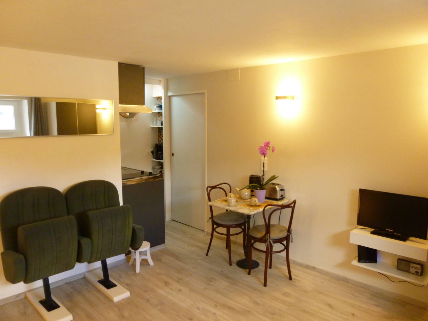 Quartier calme avec vue dégagée. Kitchenette, douche italienne, buanderie. Navette thermale et bus urbain à proximité. Proche de tous commerces et services. Emplacement gratuit pour garer son véhicule.